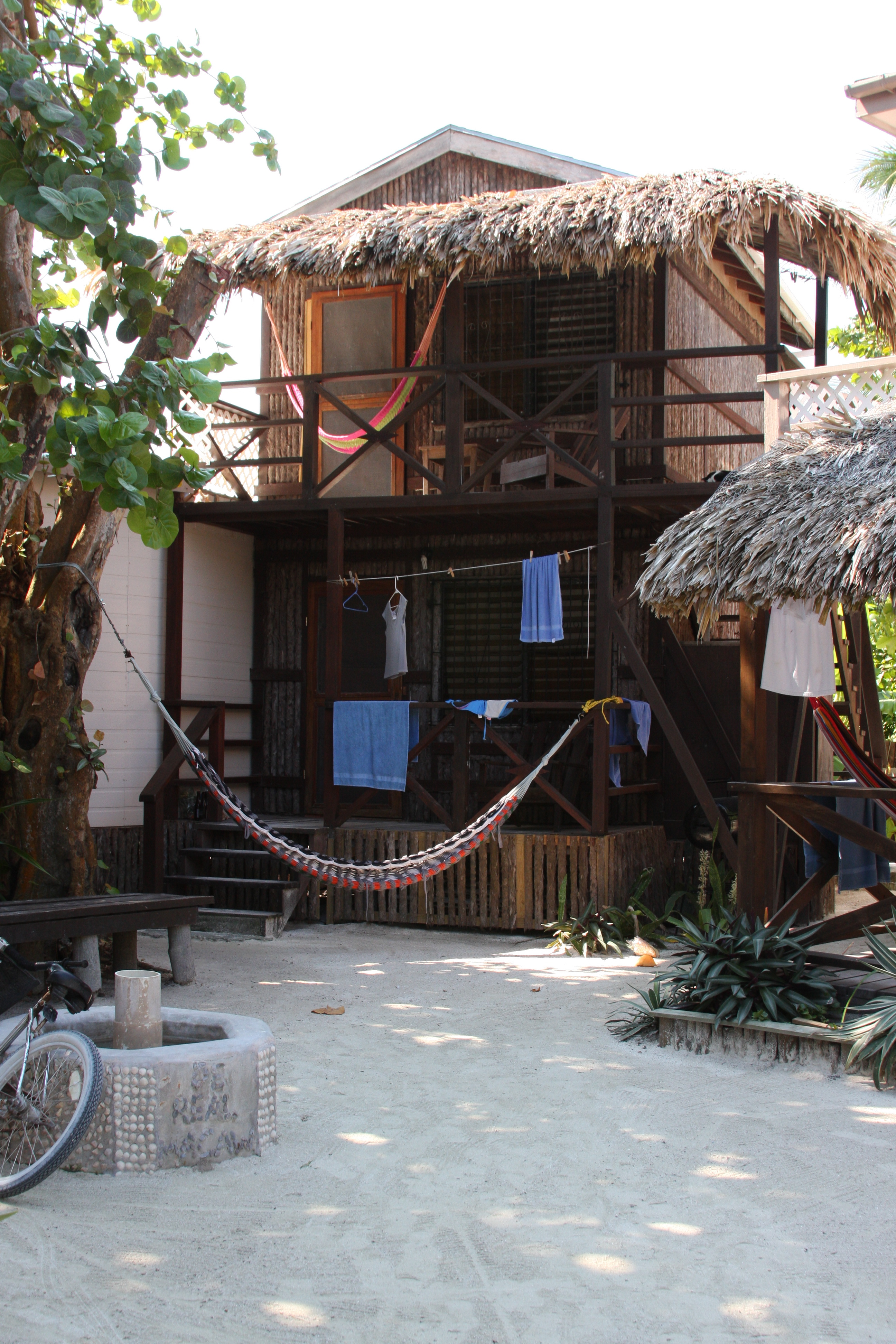 After the jungle we headed out to Caye Caulker. Hannah still didn't have her bag and she was told to just fill out the claim forms because she probably wouldn't get it back. Here is our place at DaRealMacaw. We had the upper cabana and spent a lot of time sitting in the hammock.