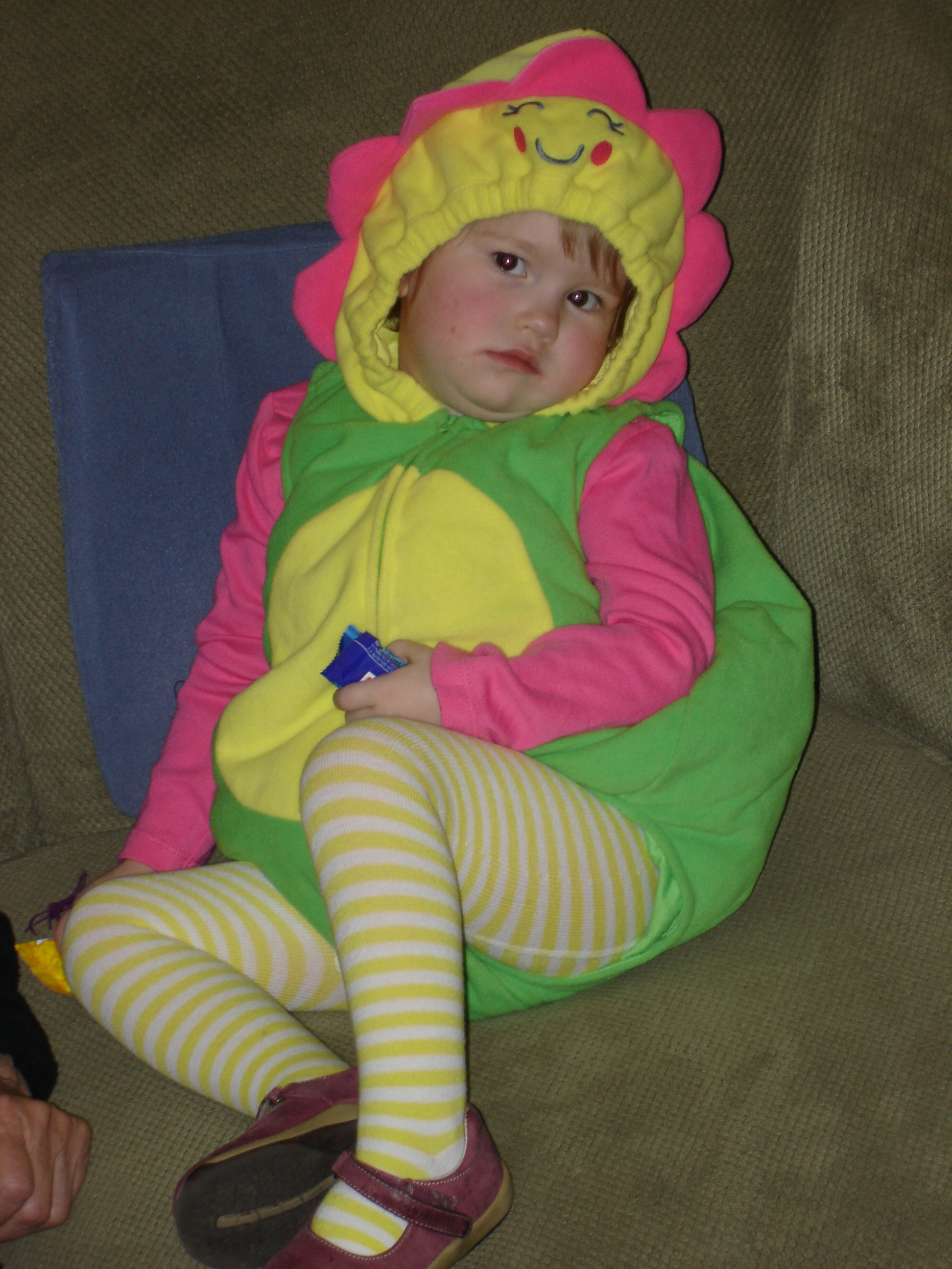 Mathilda dressed up as a duck. She is walking around pretty well now and is looking forward to going door to door next year.