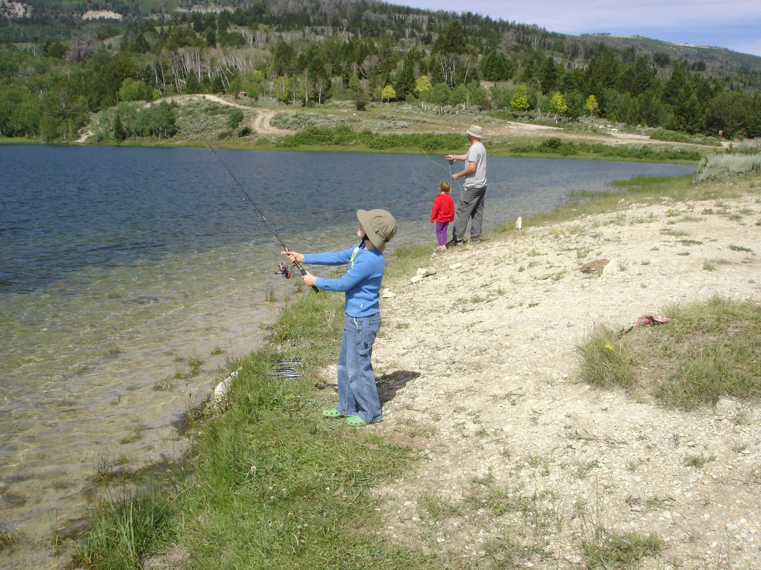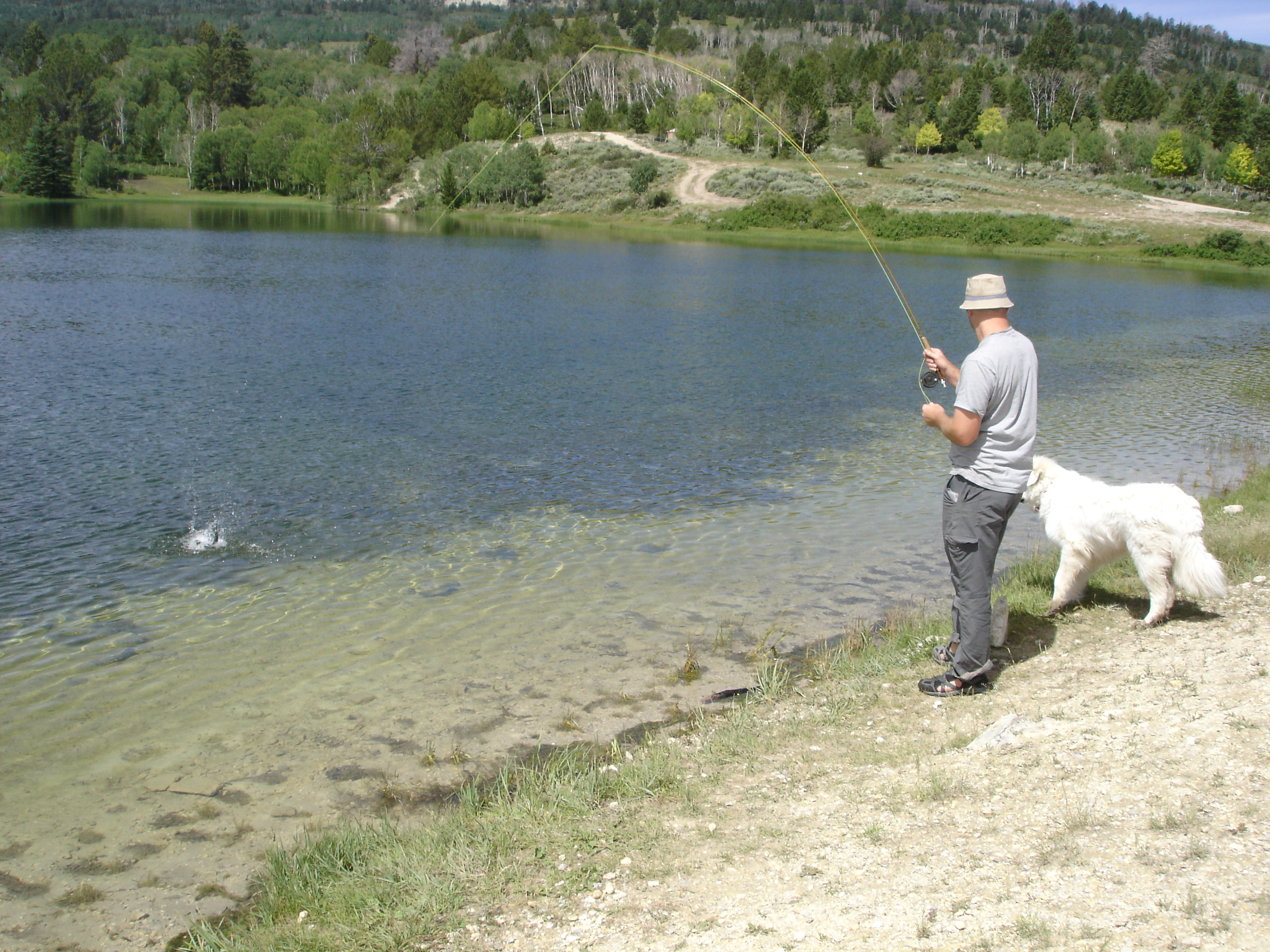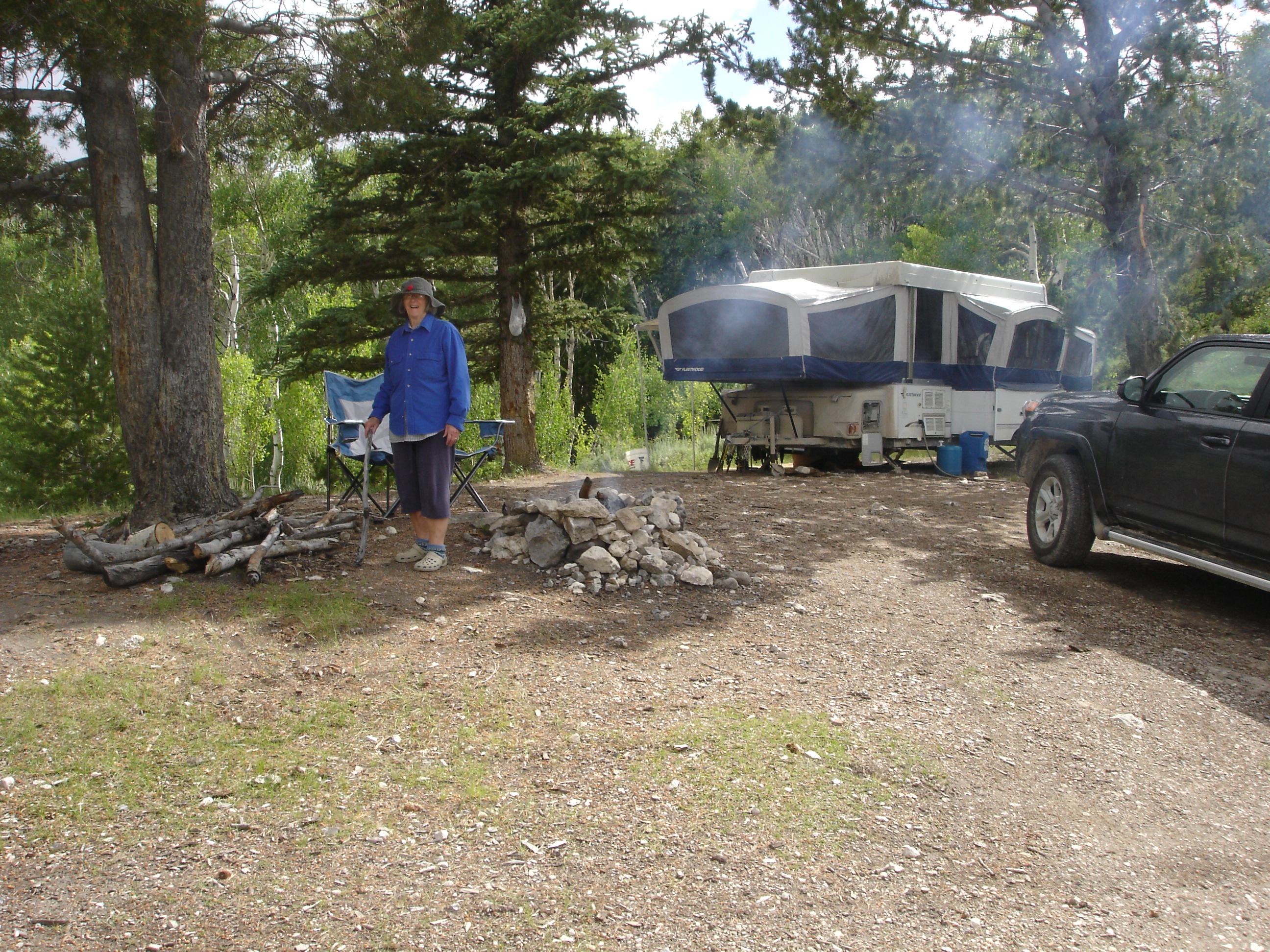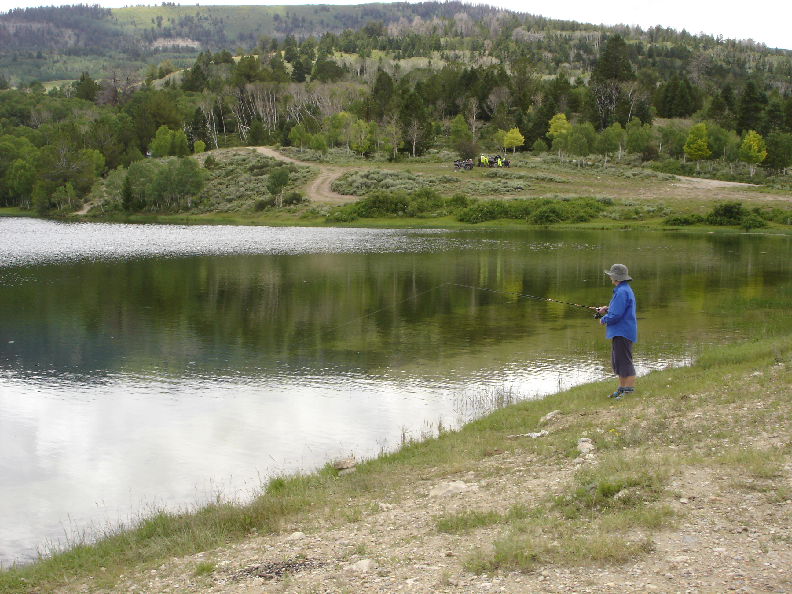 We left for our favorite camping sites above Ferron as soon as the Fourth-of-July crowd went home! We camped at Wrigley Reservoir - it was too muddy and slippery to get into our other camp sites. The camp at Wrigley turned out to be just fine - not many people were around. Jason, Ann, Steve and Amanda came for a couple days, too. It rained in the afternoon most of the days, but that was expected this time of year, and it didn't interfere with our fishing! We were out eight nights. Lots of big zucchinni on the vine when we got home!