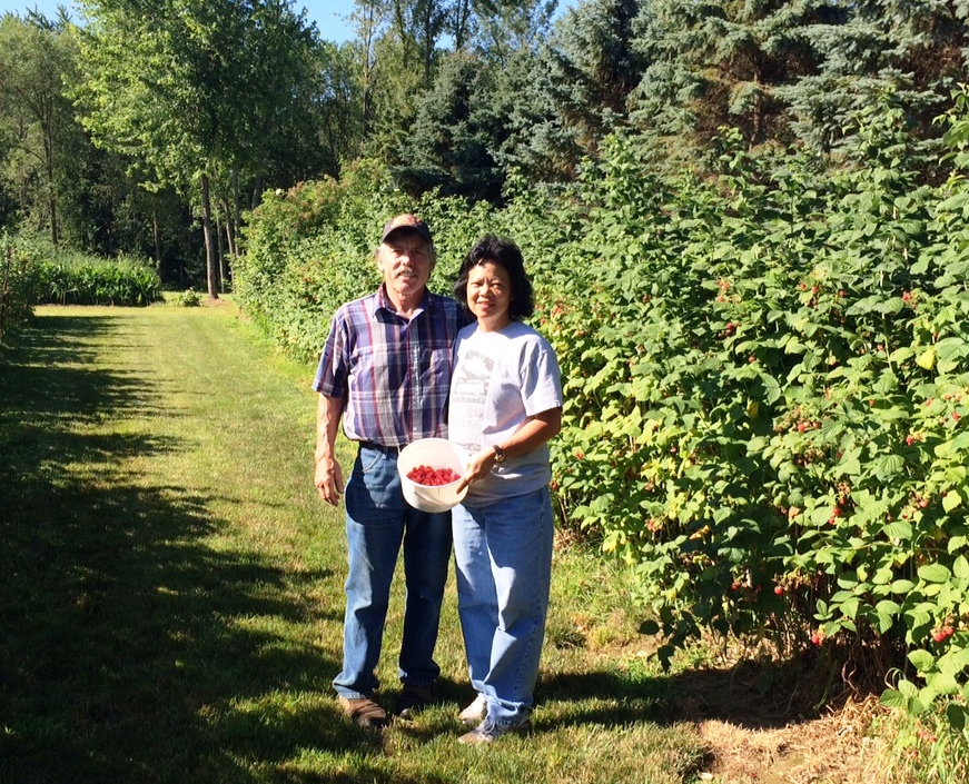 Carrie, Michaela and I left from Indy with the plan of stopping in Shiocton to visit Russ and Deb. We arrived late after a pretty uneventful drive through Chicago and up the Lake Michigan shore. The next day Deb had to work a half day so Russ took Carrie and I on a local garden tour where we picked fruits and veges for the weekend while the owners were away. We also had a chance to get a tour of Curtis' company, Dirty Jigs Tackle. It's a very impressive operation. I also was able to get some pro advice on set-ups to use in Canada and after pouring some custom jig-heads and setting me up with some killer tube jigs I was definitely set to nail the smallmouth. Deb's garden was awesome too.