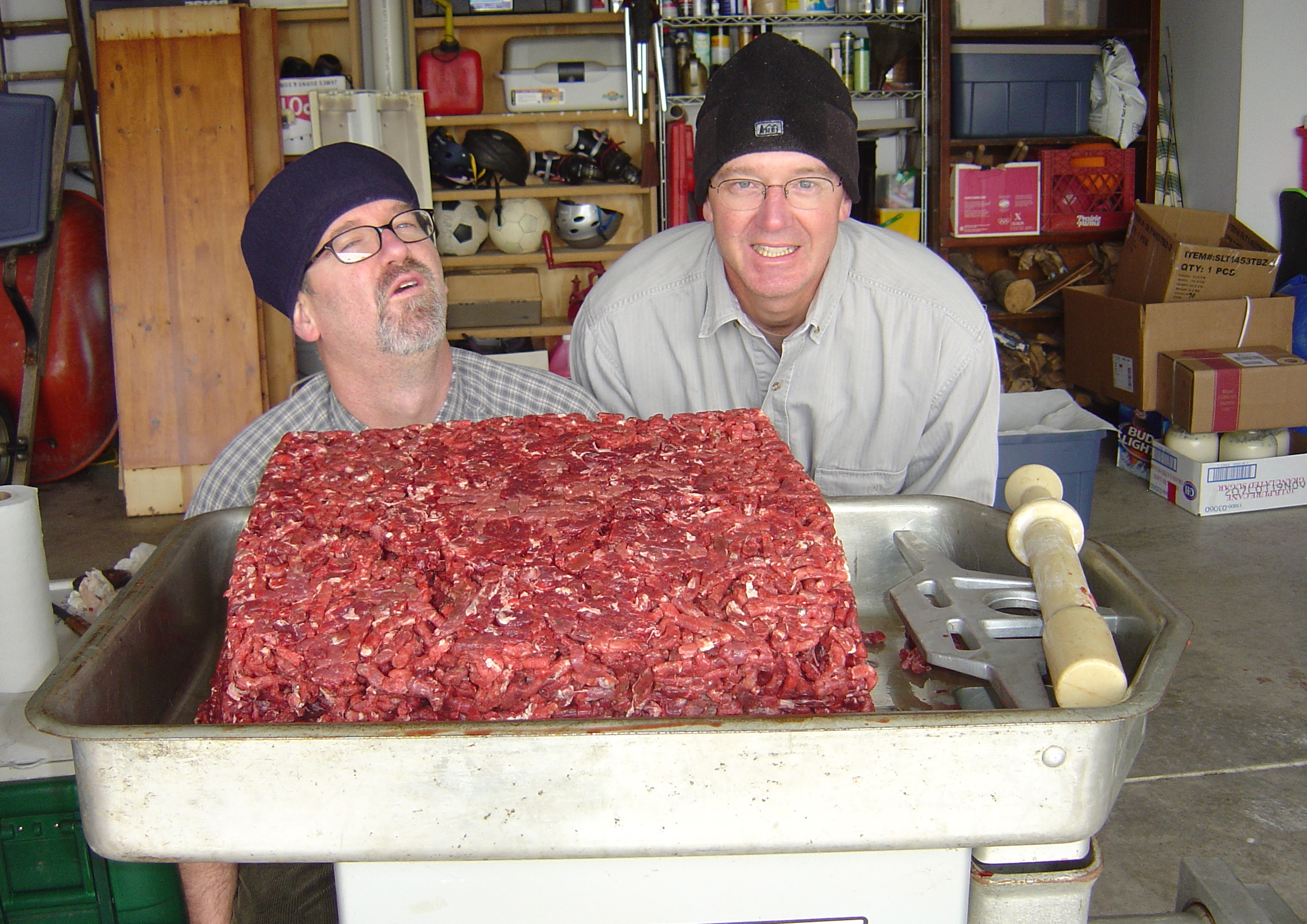 Chris and Jon ground 70 lbs of deer, elk, and hog.
