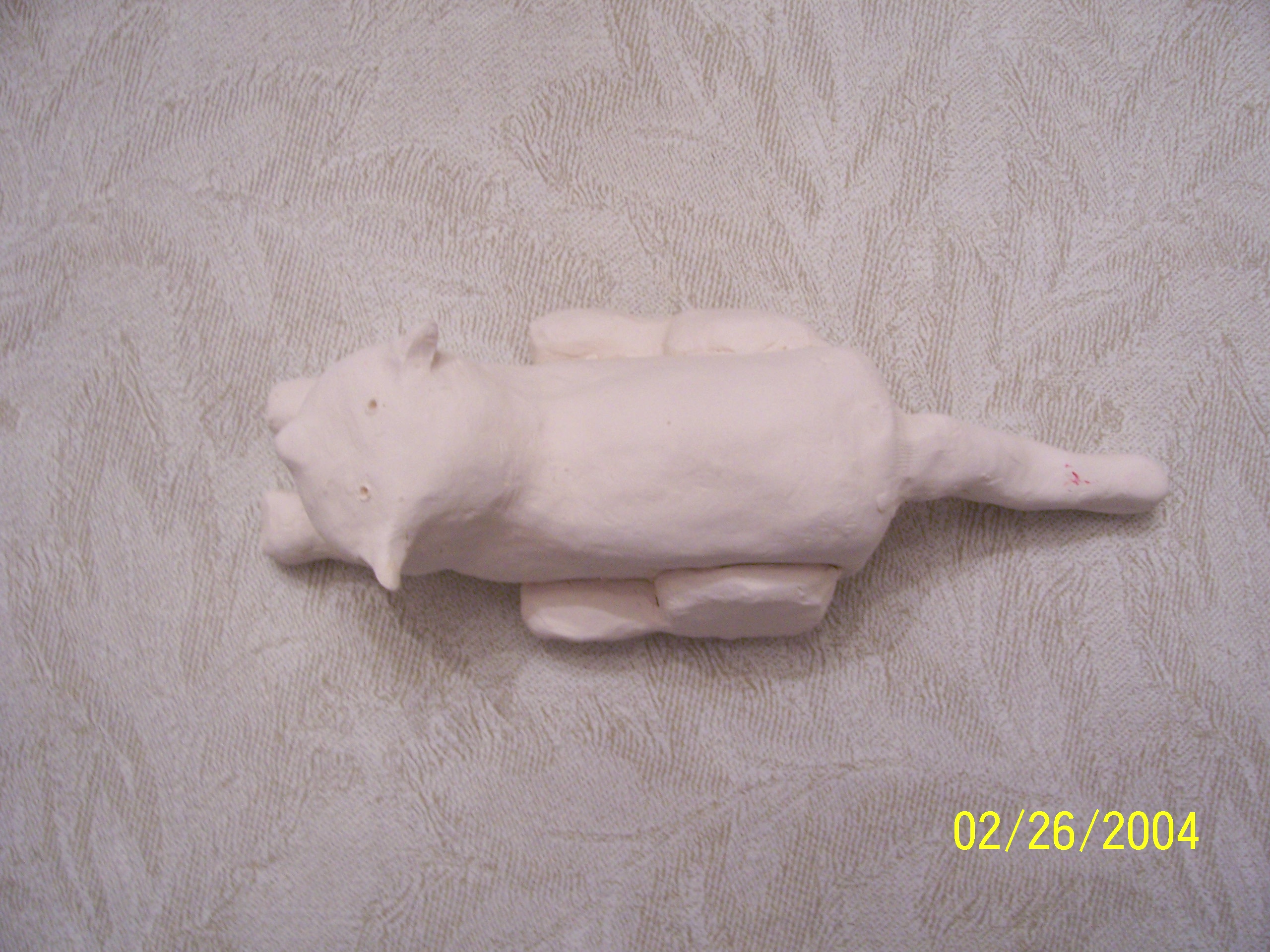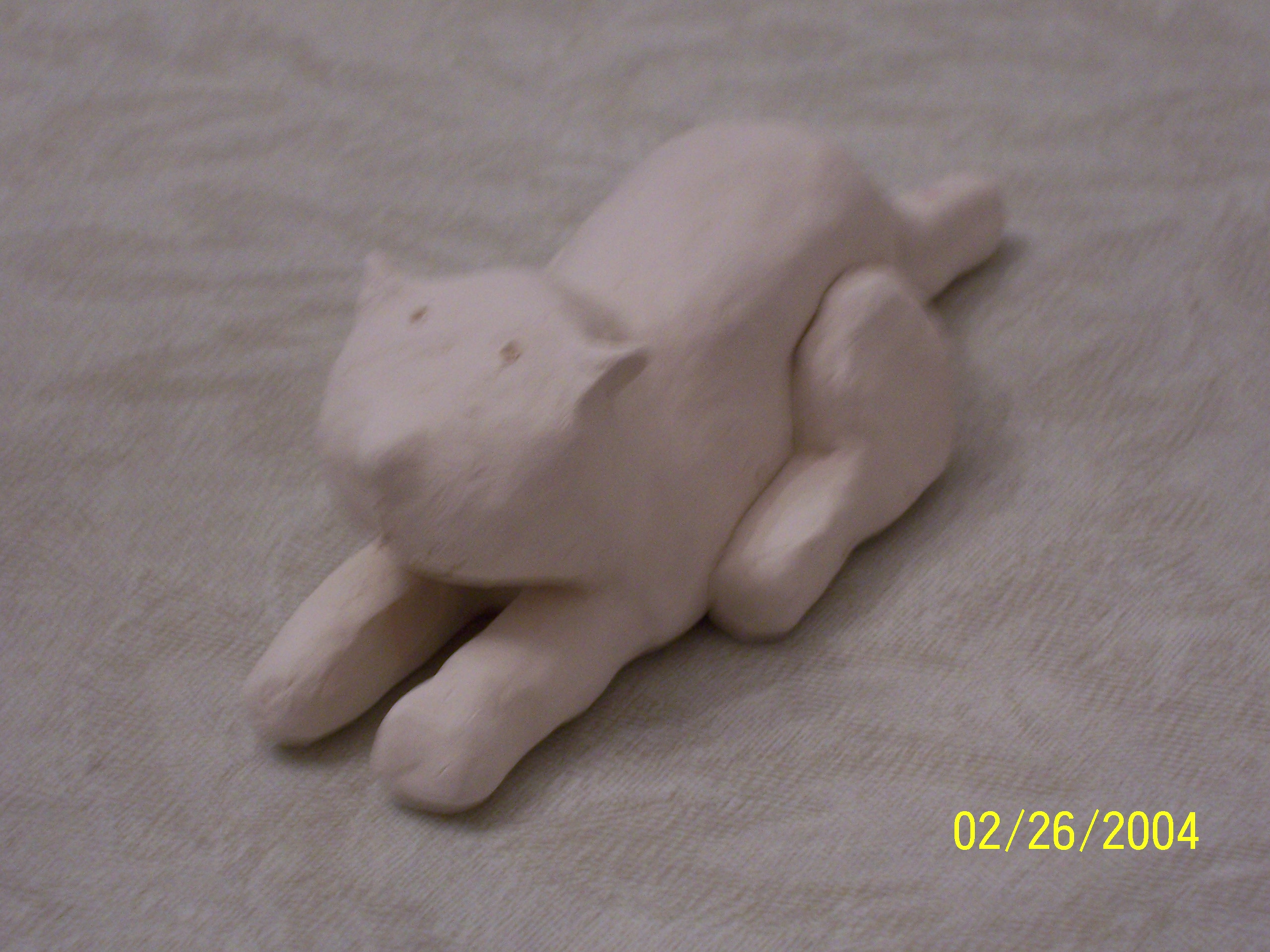 I think your cat is just the greatest!! Too bad you couldn't get it fired in the kiln, it would make a great present anyway. Keep up the good work.