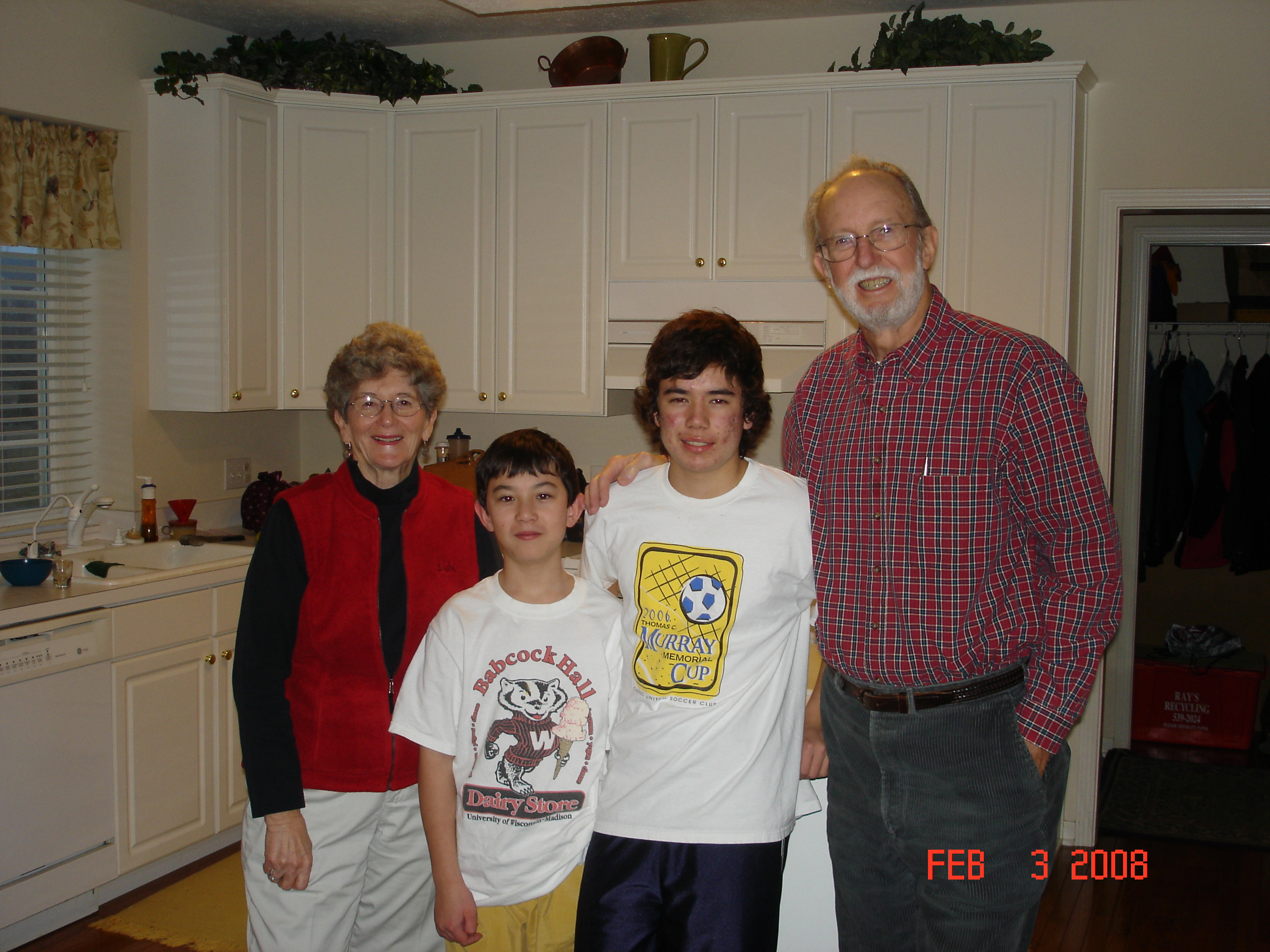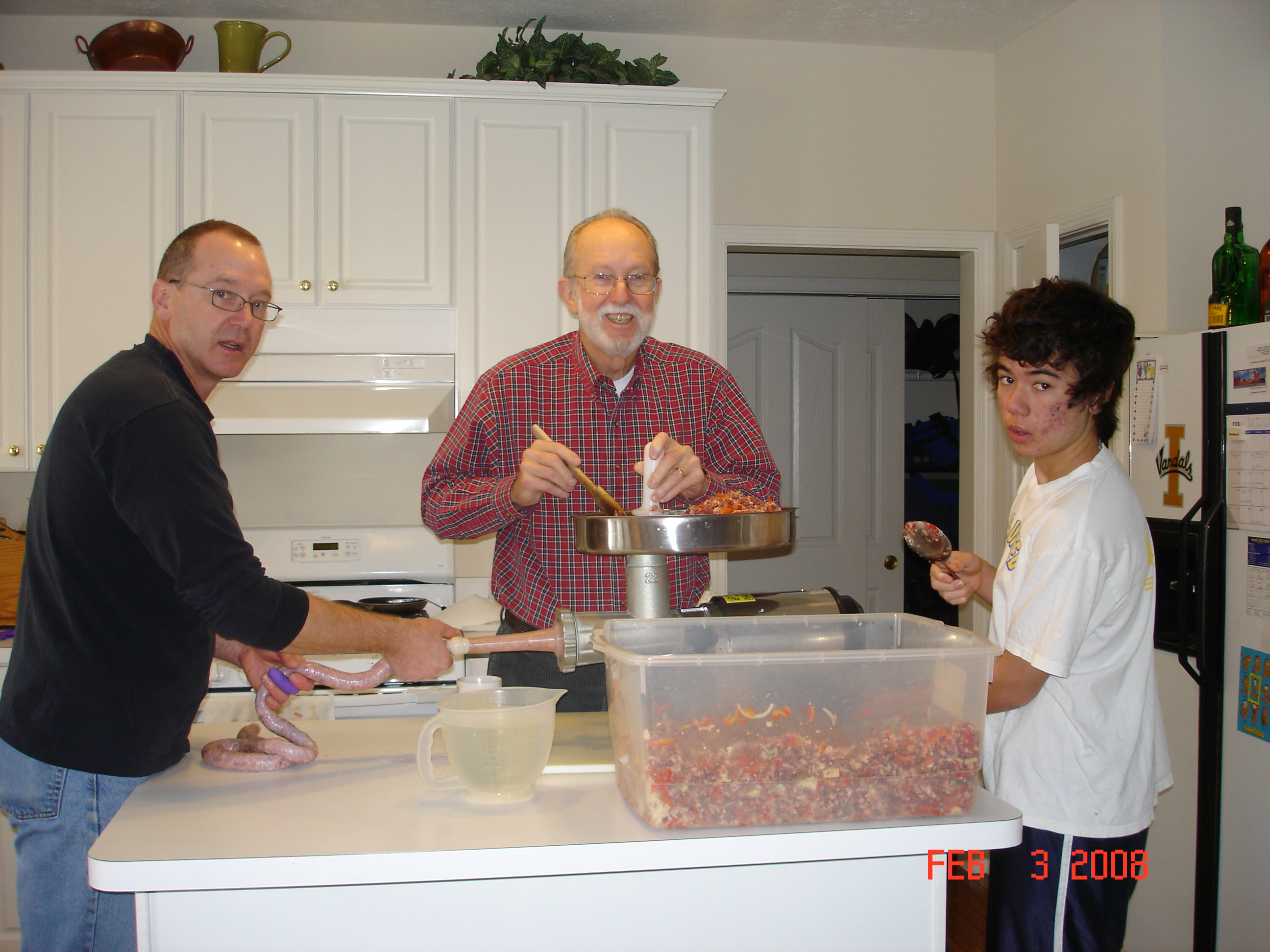 We visited Jon, Carrie, and boys the first week in February. We ate well, played cards, made sausage, shopped, read, and watched the Super Bowl. The weather was all we expected of the mid-west: rain, snow, ice, cold, warm, etc.! Here are some pictures.