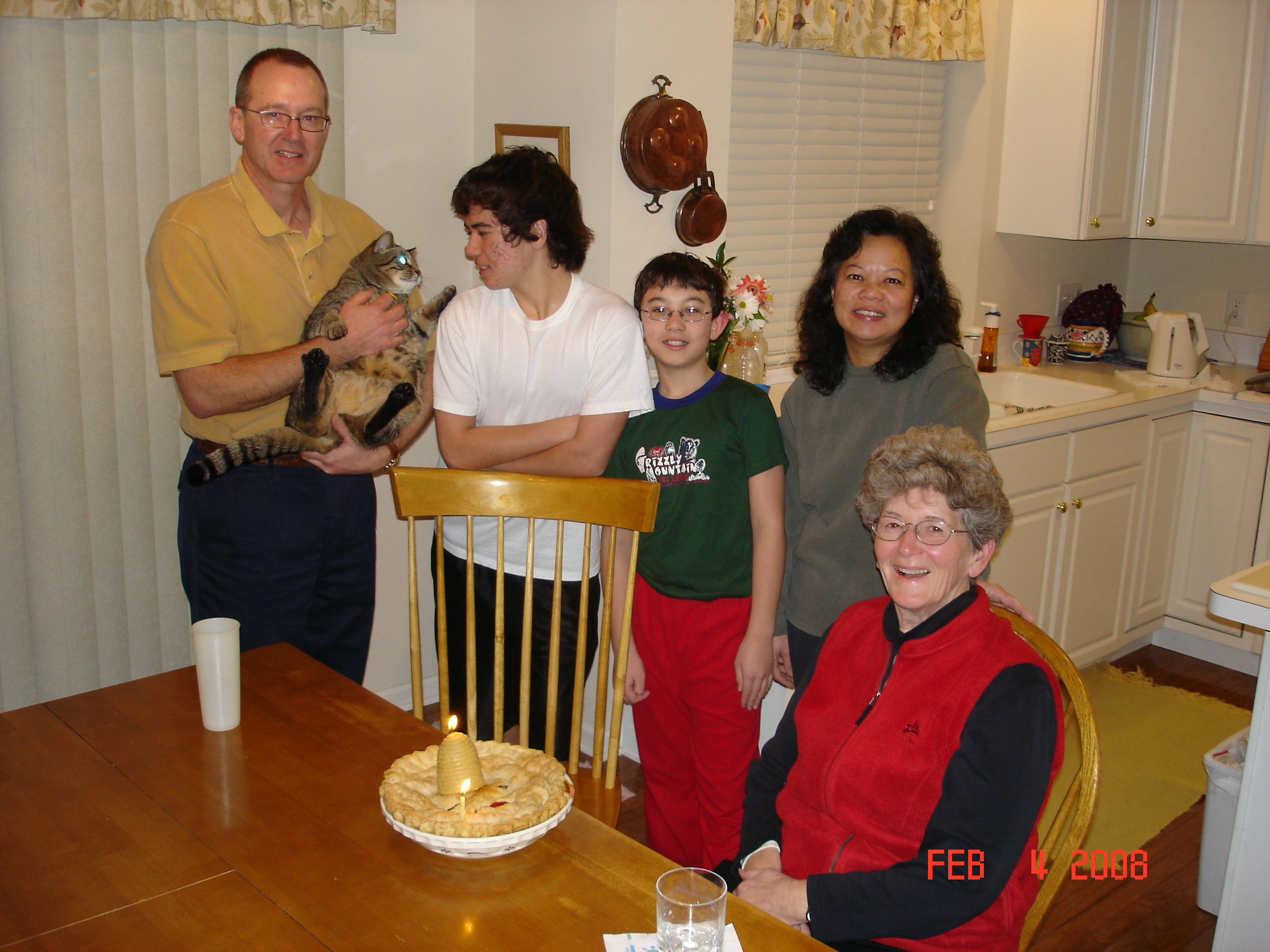 Looks like a great time was had by all. The boys are busy from what mom and dad said, and the sausage party is now a family traditon (hey is it true that "if you squeeze it harder it gets bigger?"). I saw the candle on the pie you had for Mom's B-day. what is it?