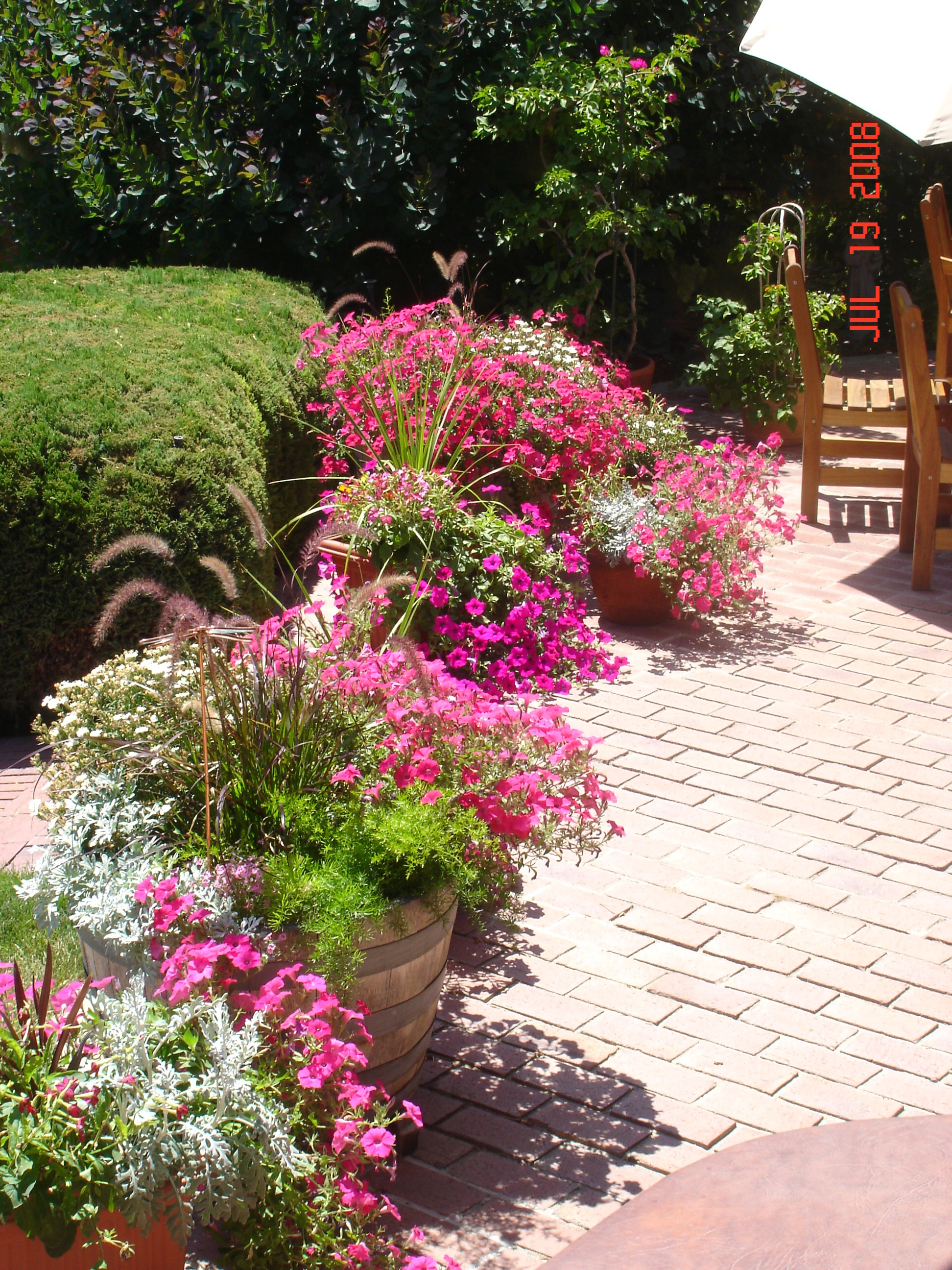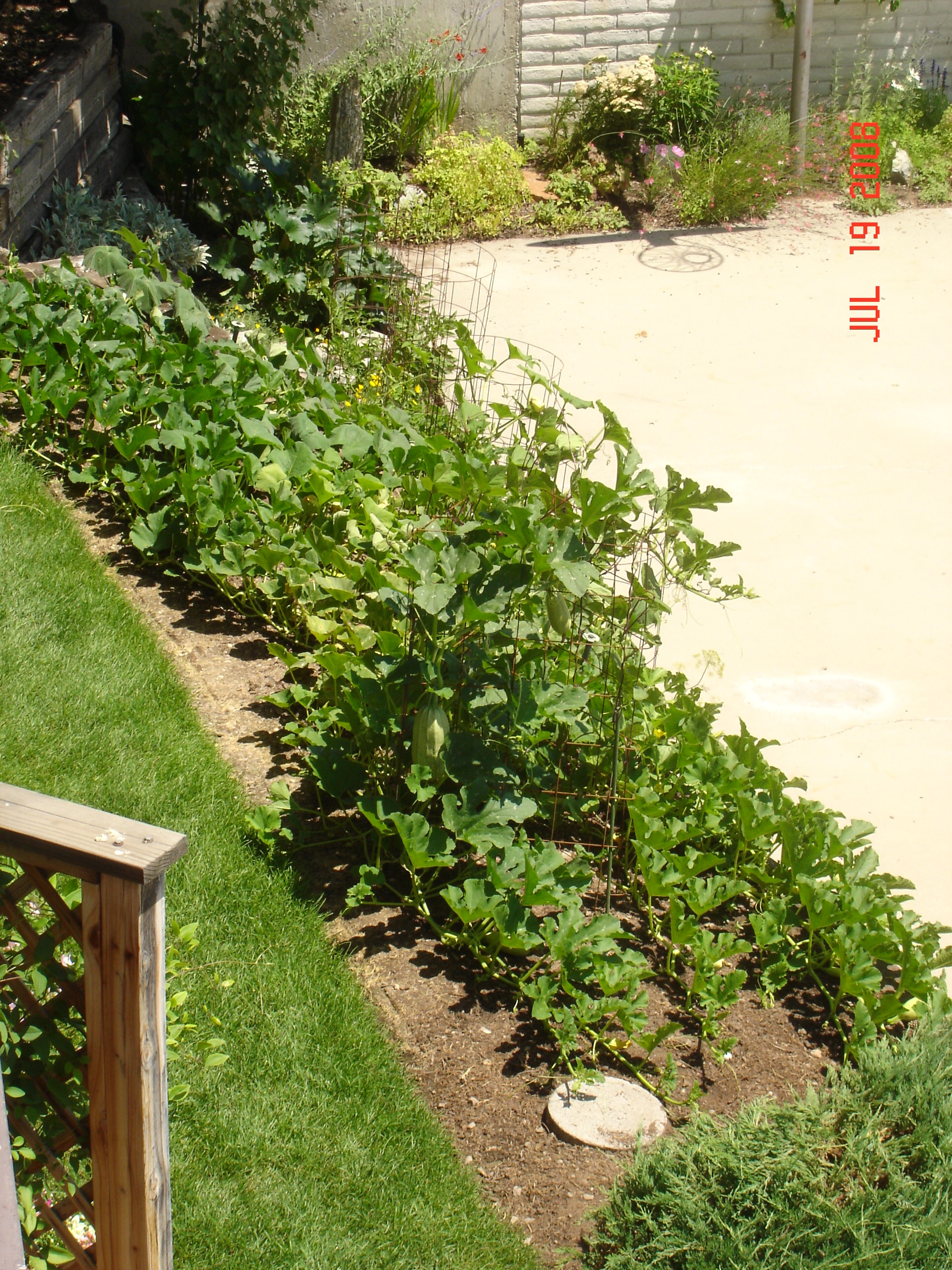 Here are Mom's petunias, and the squash from hell! We have butternut (2) and spagetti squash, plus cuces. We are afraid to walk by the Sp. Sq. for fear it will grab us, its growing so fast! We are eating beans almost every day, and a few tomatoes already. A good year!