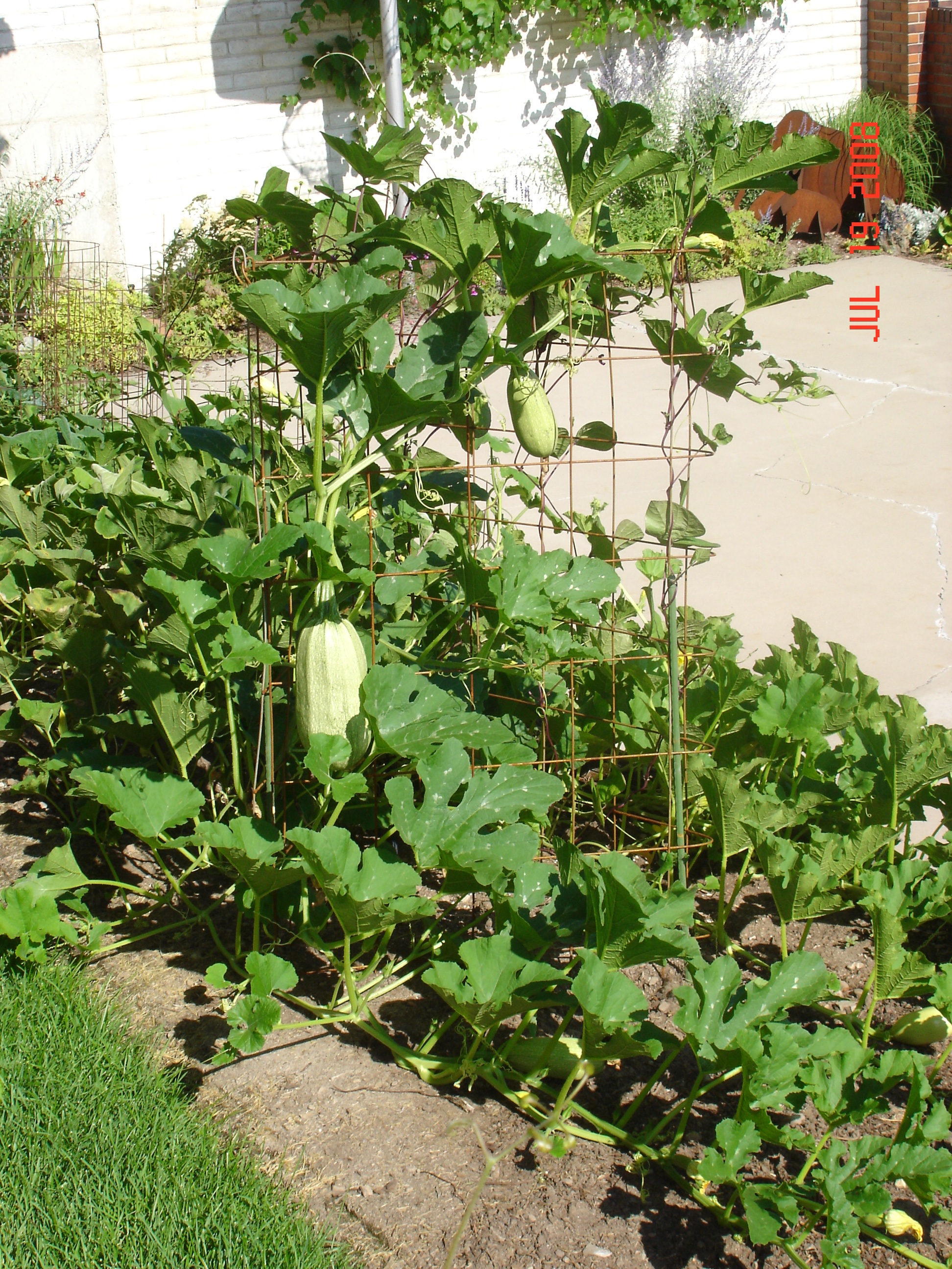 The wire frame was for pole beans - they won't have a chance competing with the spagetti squash!