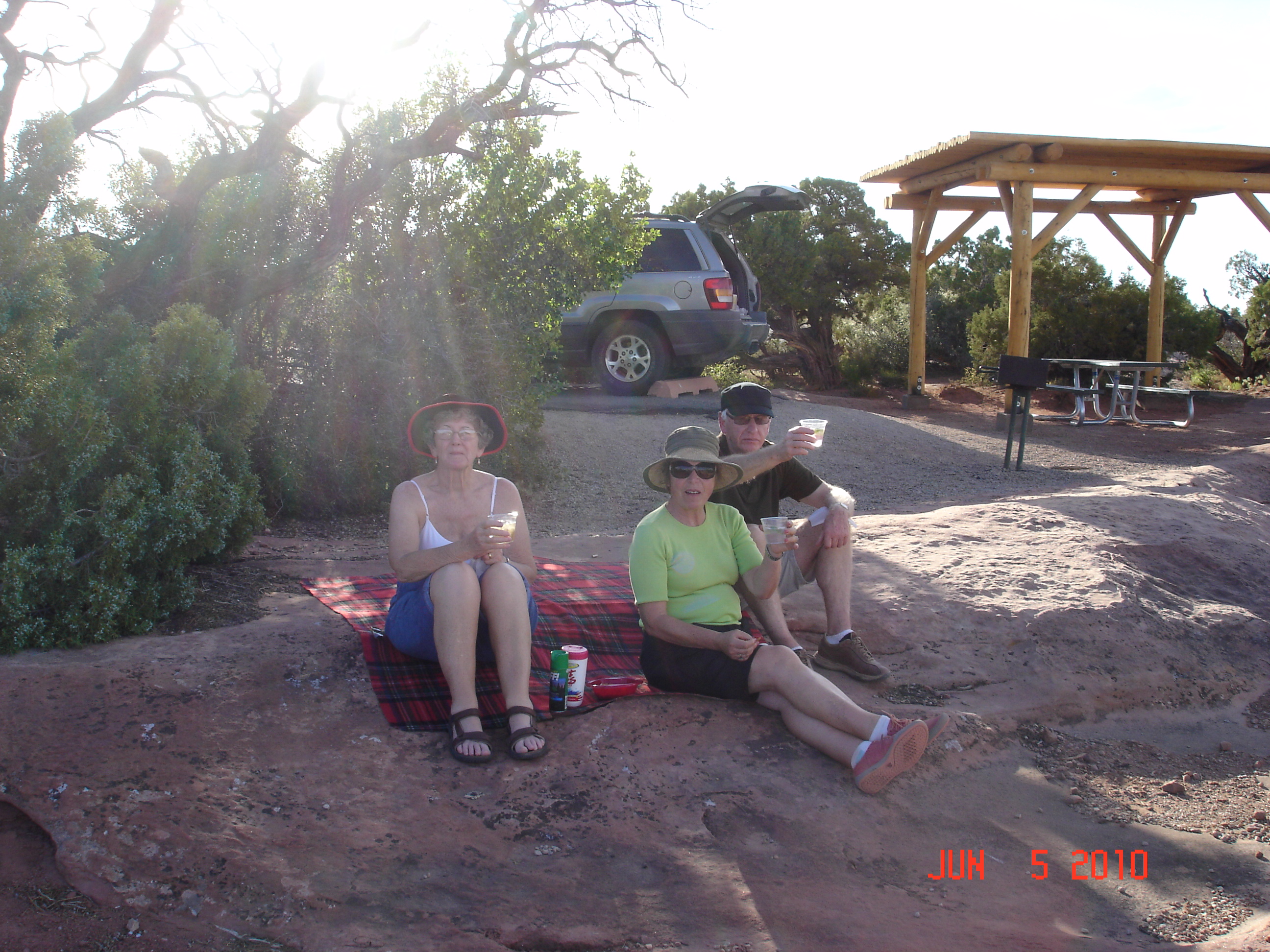 We met Jock and Rosemary Braithwaite in Montecello Memorial Day weekend for three nights. We toured the Moab area parks, and did the "cocktails at the overlook" thing, saw Newspaper Rock, and ate ribs and Mexican! They then proceeded to CO, NMx,