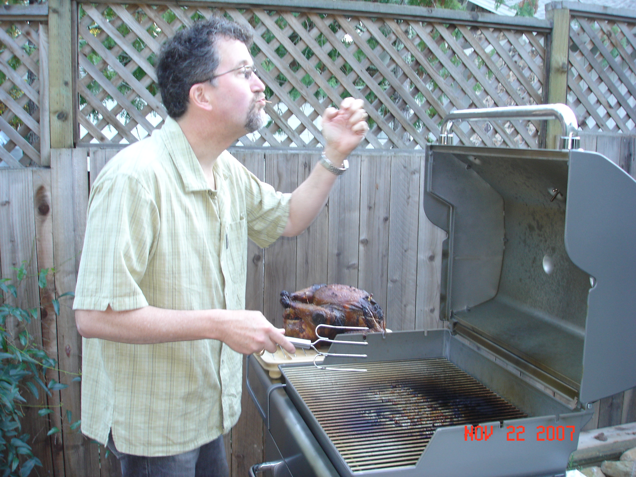 We had a BBQ turkey, lots of the usual and lots of unusual extras, "some" wine and other refreshments, Monica fixed breakfast for the three of us, and the party began at 2PM. She did a great job!