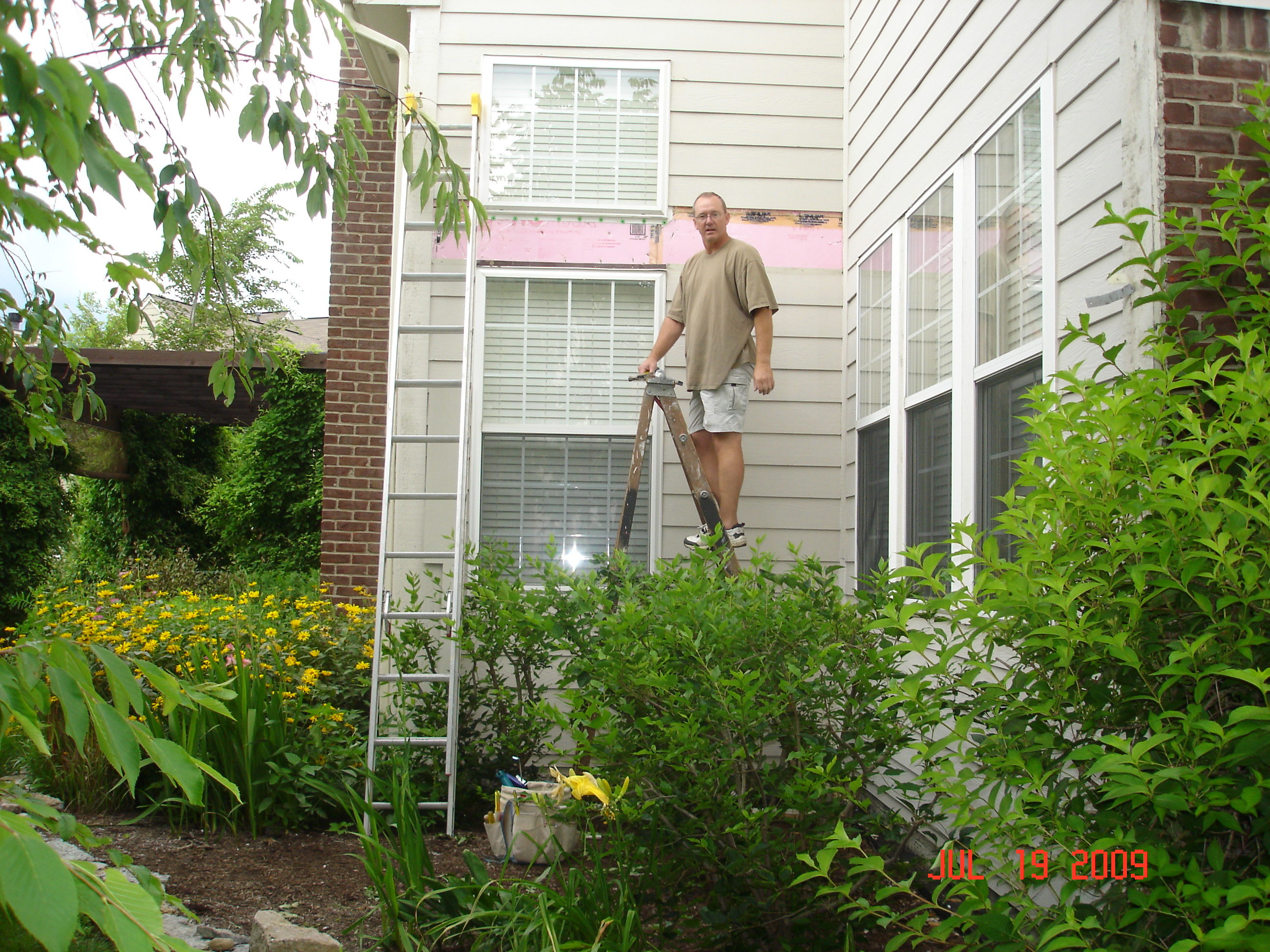 Mom spent a week at Jon and Carrie's just after the Fourth, and drove over to see Kate and Bob, Carl and Sandy before returning on July 21. Here are a couple pictures from Quincy and some from Jon's, where he was putting in a new garden "berm" and replacing some siding that was going bad. It was a good trip. I was at Anaheim for the Episcopal Church's two-week General Convention while Mom was away.