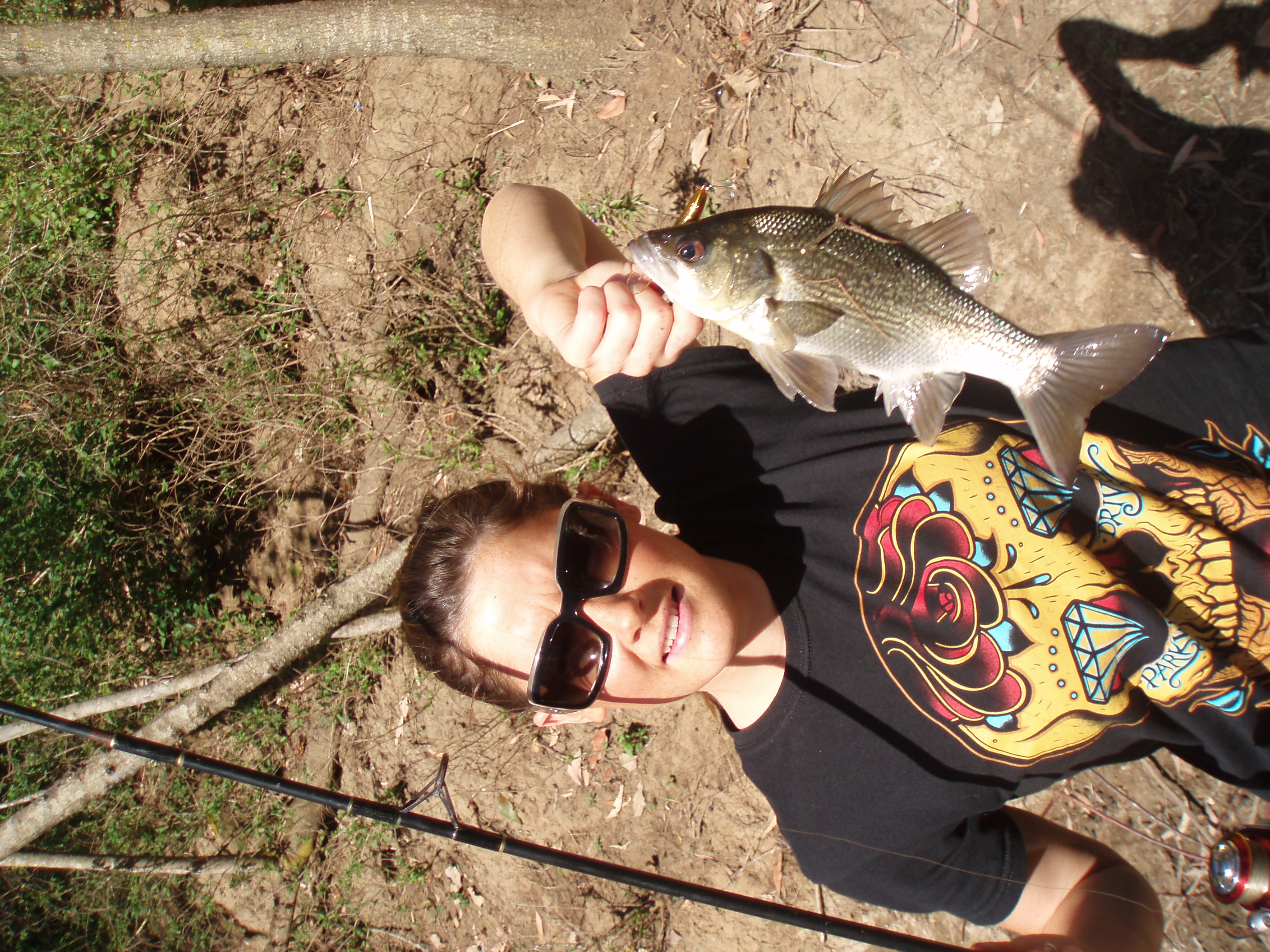 rhys and i went to the coast last weekend and did a couple fishing trips. we had no luck at a big dam east of the sunshine coast but we thought we'd give grandad's dam at the lychee farm a try on the way home. he stocked it with bass a few years back and we were stoked to hook up straight away. we ended up getting six, but put them back to catch next time. there must be heaps in there, the water is practically alive! sweet private dam to fish in! these ones are much bigger than the ones dad and i were getting the weekend before. pretty cool... definitely going back there soon!