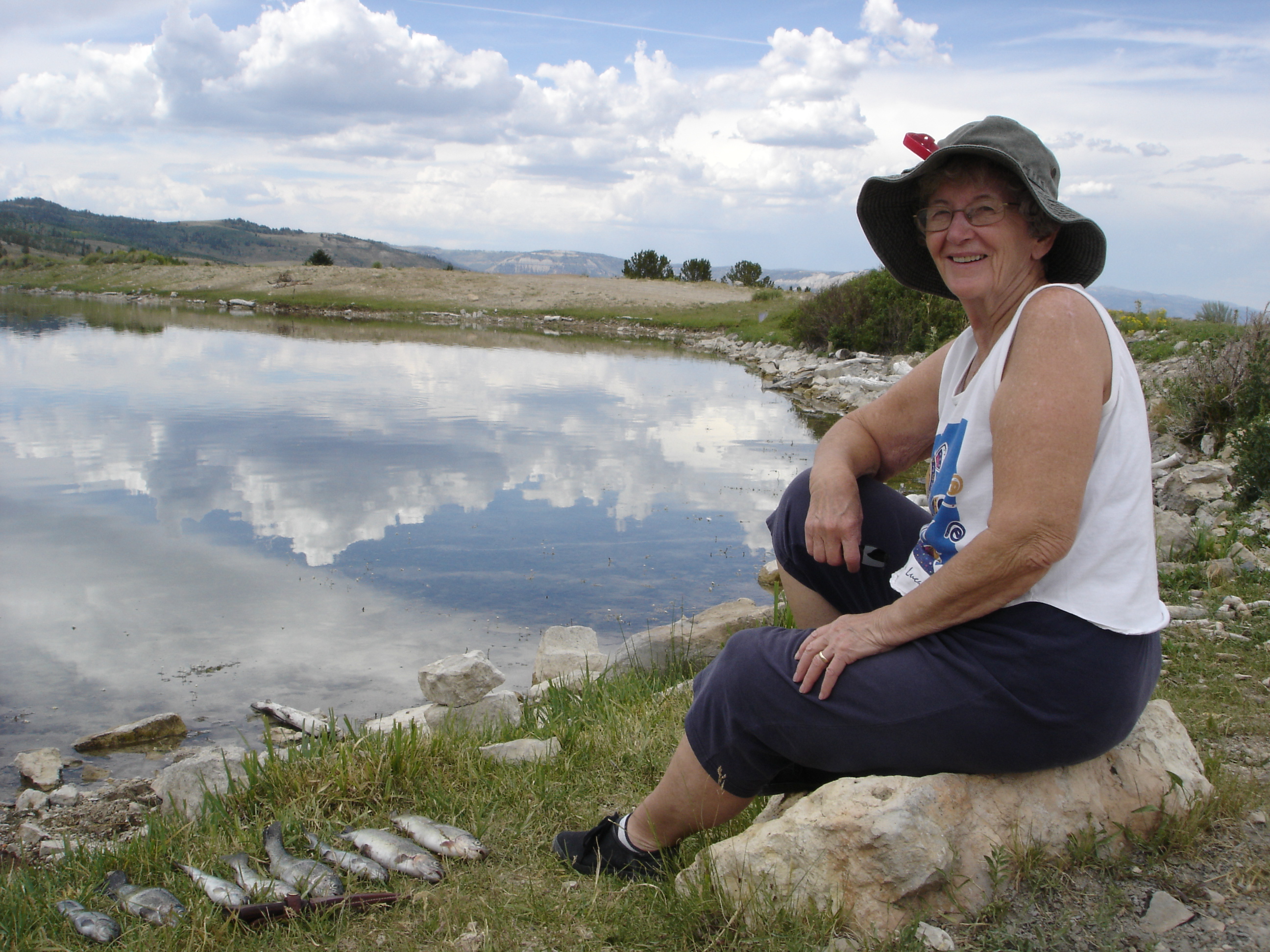 We spent five days camped at about 9,500 feet elevation west of Ferron last week. It was over 100 F here in SLC but only reached 80F a couple times in the middle of the day where we were. Great! We fished Wrigley Reservoir every day and filled our limit of 4 fish apiece each time. It was very peaceful at our camp. This is where we camped with Michalea, Deirdre, Jordan and Andy many years ago. We hope to get out camping again in two weeks.