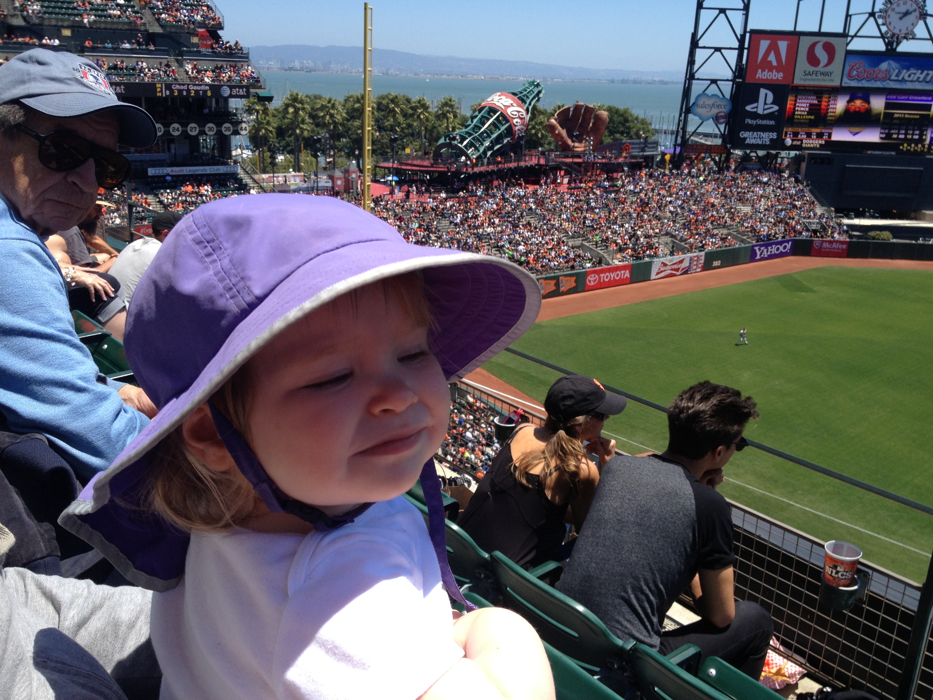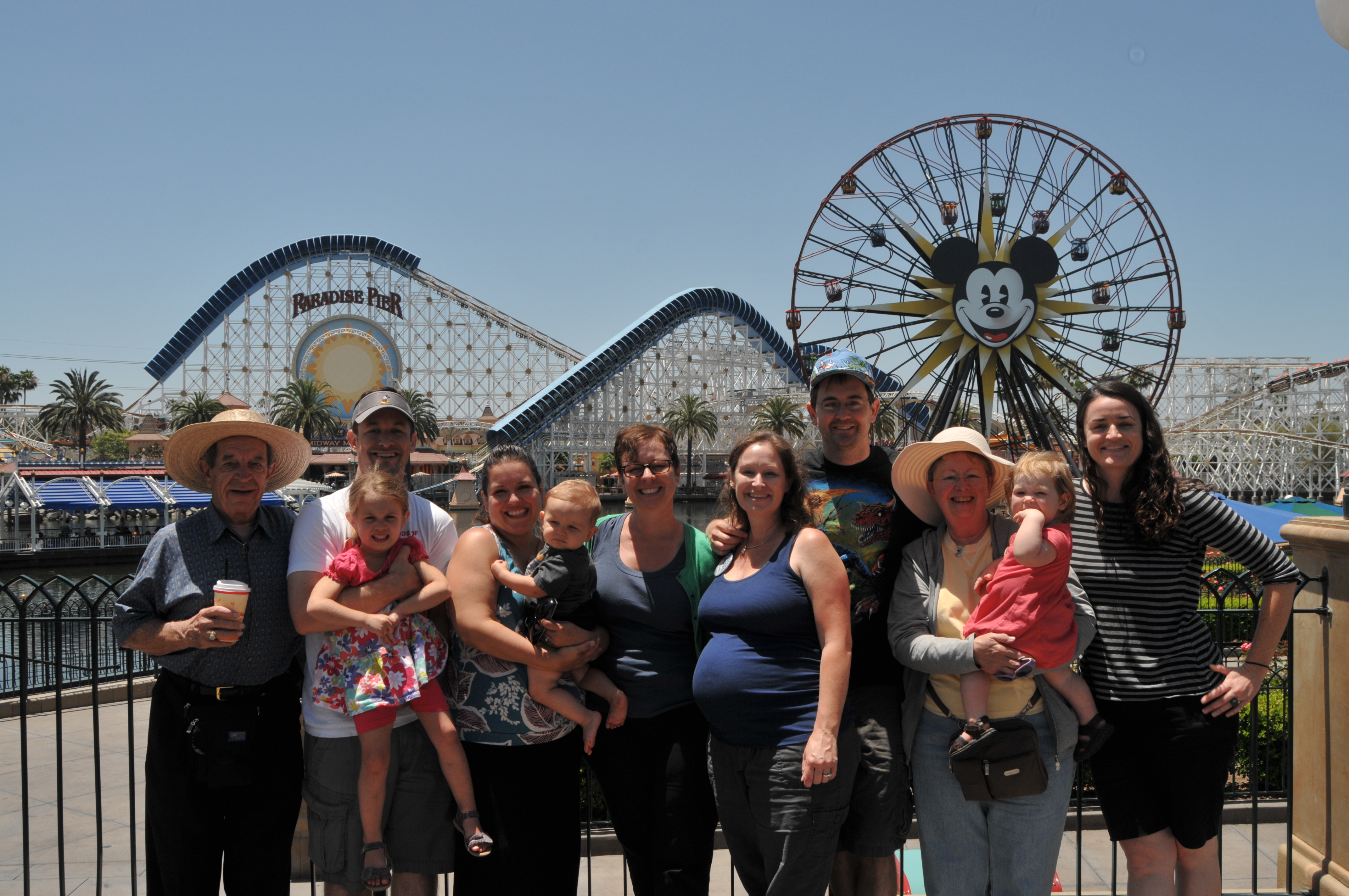 We have been busy around here. We went to Disneyland with Hannah's family to celebrate her 40th birthday. Mathilda enjoyed the rides but she did not like the people dressed up in costumes. When we got home Hannah's relatives from England were visiting. We took them to a Giants game. Hannah is getting bigger and we have been preparing for the new baby by taking down wallpaper. Mathilda is growing up fast. She just moved from the crib to a real bed. She made the transition without too much fuss.