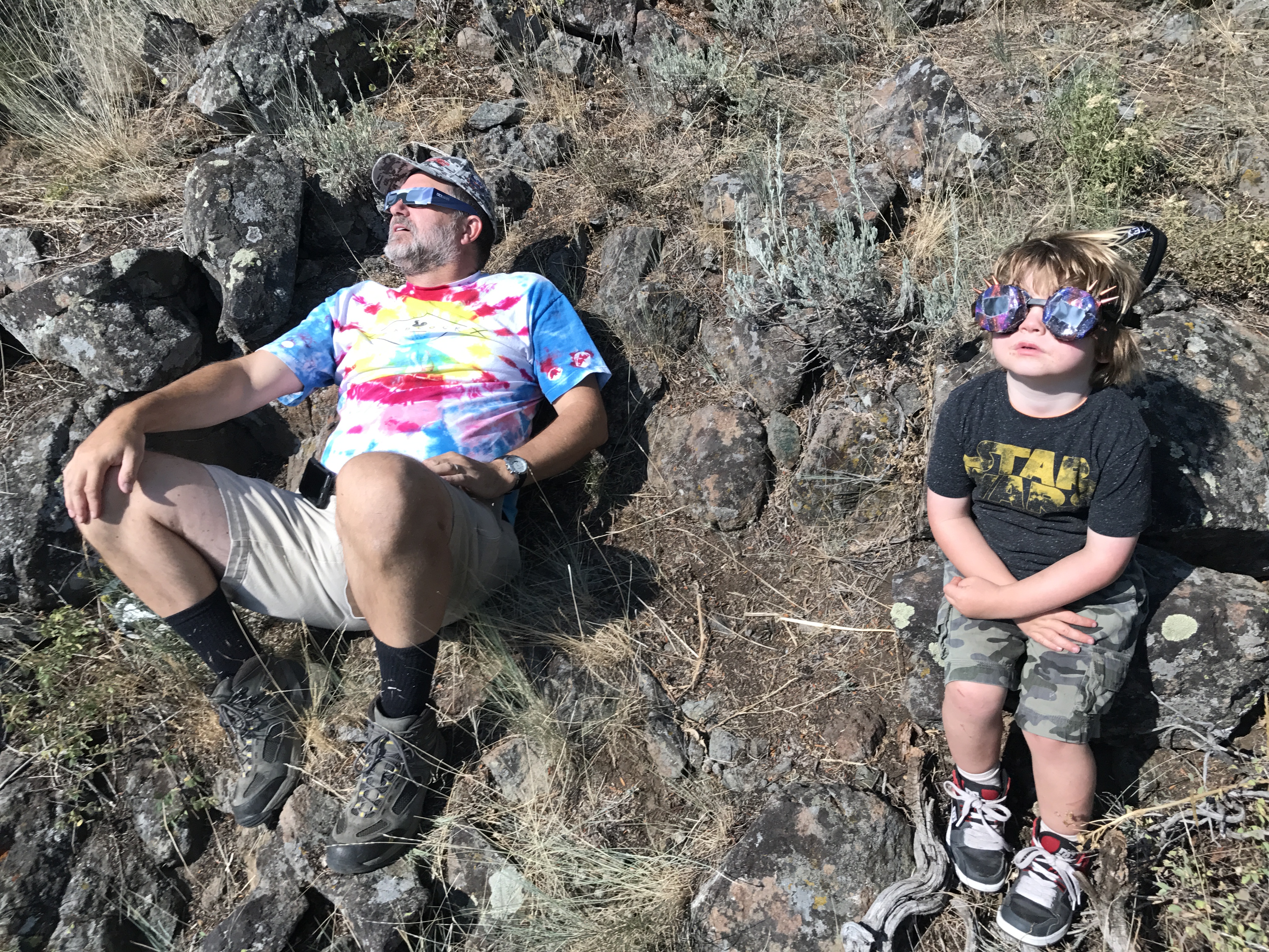 Really fun trip. Winston got a good taste of off trail bushwacking. also scared the crap out of me with his rock climbing /scrambling. Eclipse was crazy and a definite life experience (most of which seem to only last 2 minutes, huh). Did mike mention the bear cave by the camp?