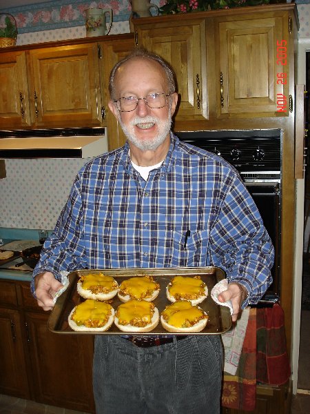Melt 3 T butter in a large skillet, saute 1 C diced celery, add 3 C cooked, diced or chopped turkey until warm, add 8 oz tomato sauce and seasoning (1 T curry powder, 1 t salt, 1 t ground oregano, 1/2 t pepper). Spoon 1/2 C turkey mixture on 1/2 hamburger bun, top with slice of cheese. Heat in 300 F oven for 5 minutes. Stand back - there will be a rush when they come out of the oven!