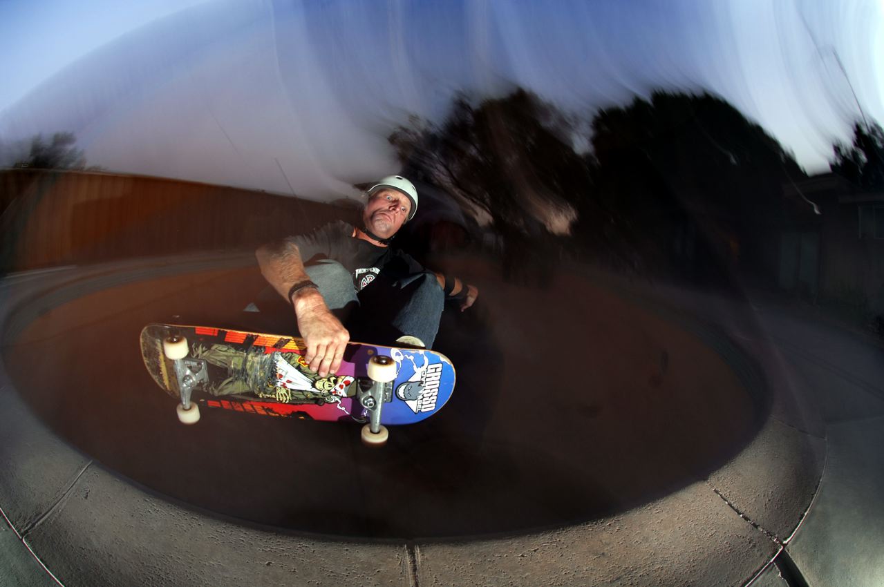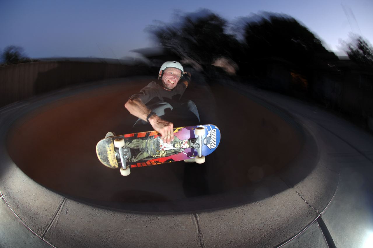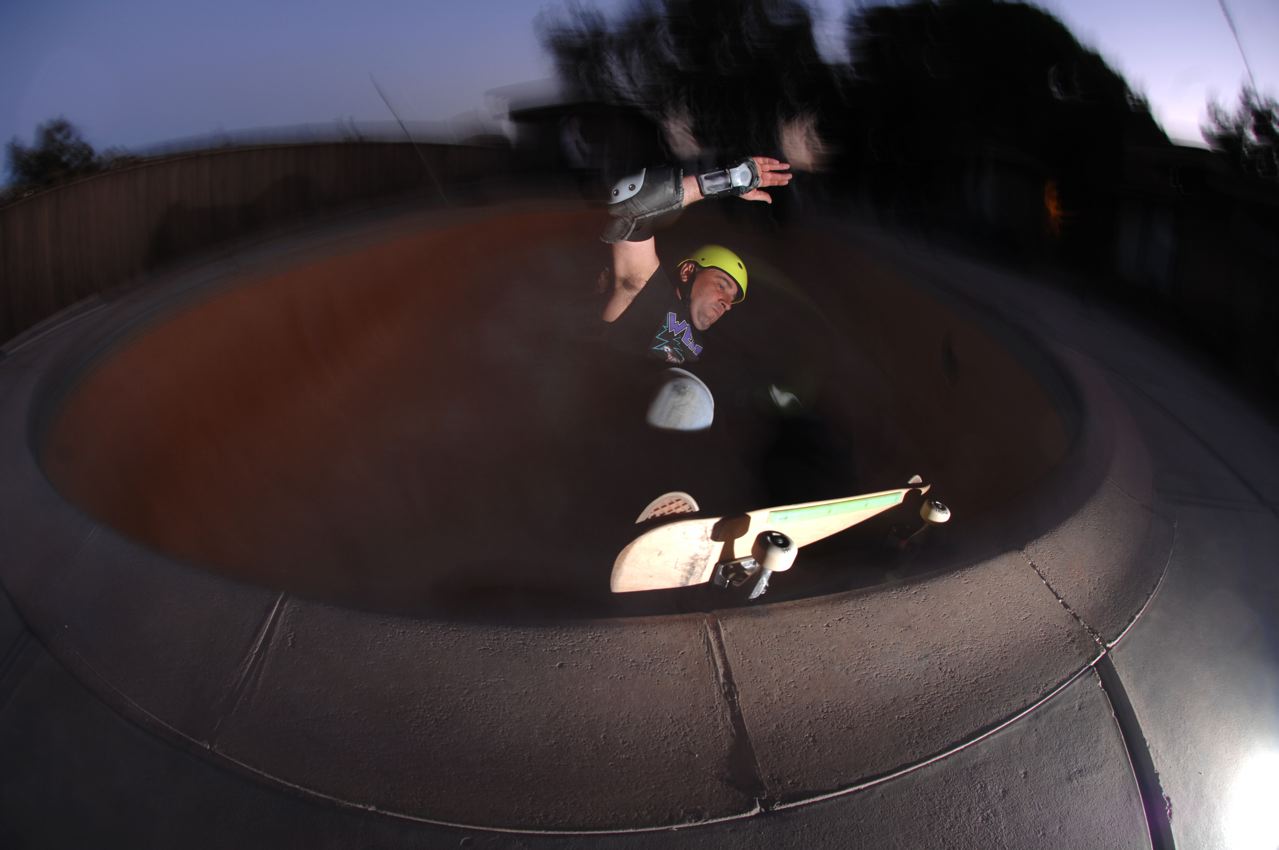We started off at pool that Errol had been skating for years. It was out back of an old trailer park. It had a hole from an old light in the middle of the deep end that was labeled with some graffiti as the devils bunghole. There was a death box about 10 o’clock on one side and some stairs about 2 o’clock. The shallow end had steep tranny and was tough to skate. The Errol ruled that place. He went over the death box a bunch and made it over the stair even though the tranny was pretty tight on the other side. I coulda skated there all day. It was the second pool I had ever skated. The first was behind an apartment complex in Seattle and right after we got it cleaned up and took a couple runs it start raining so we bailed.