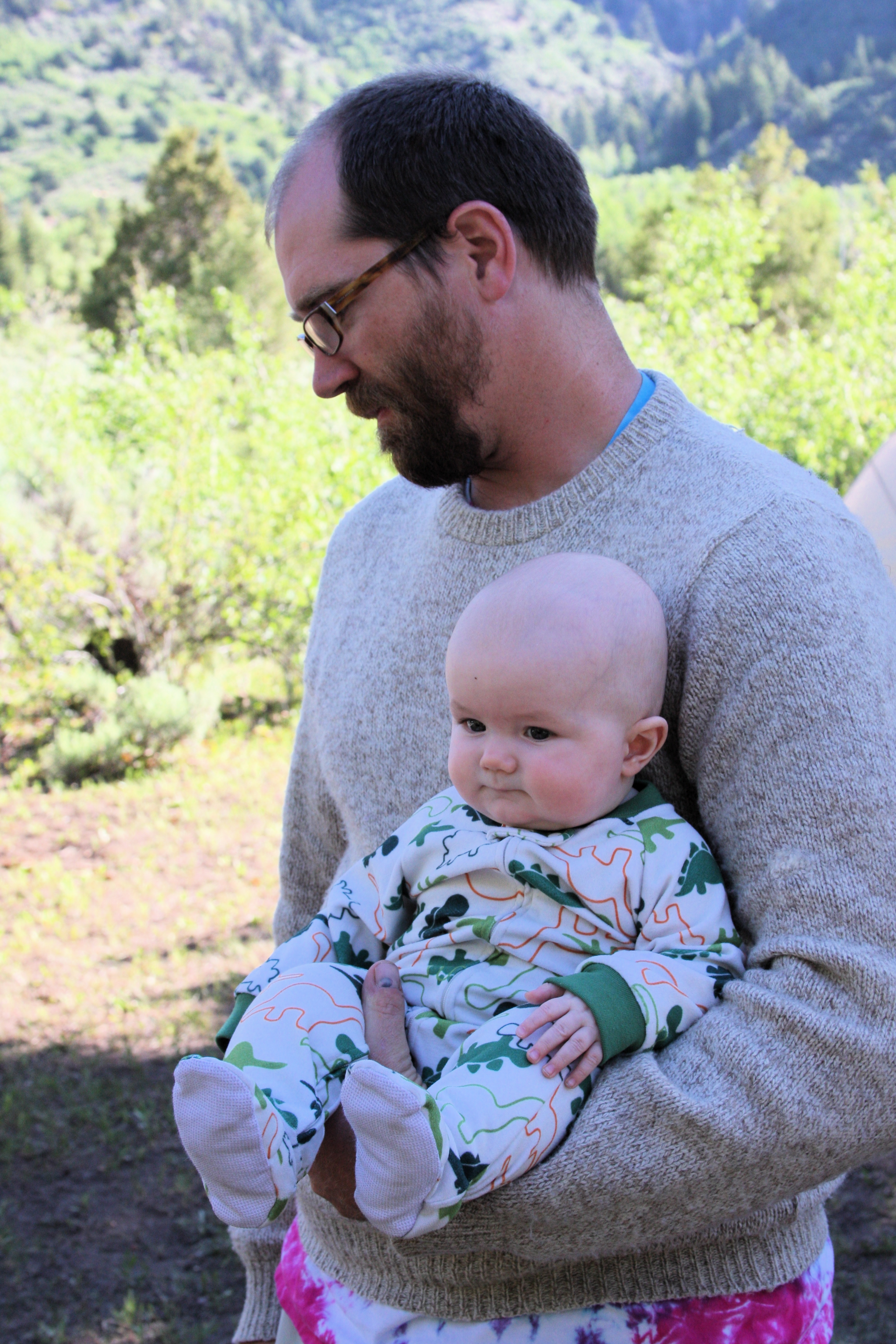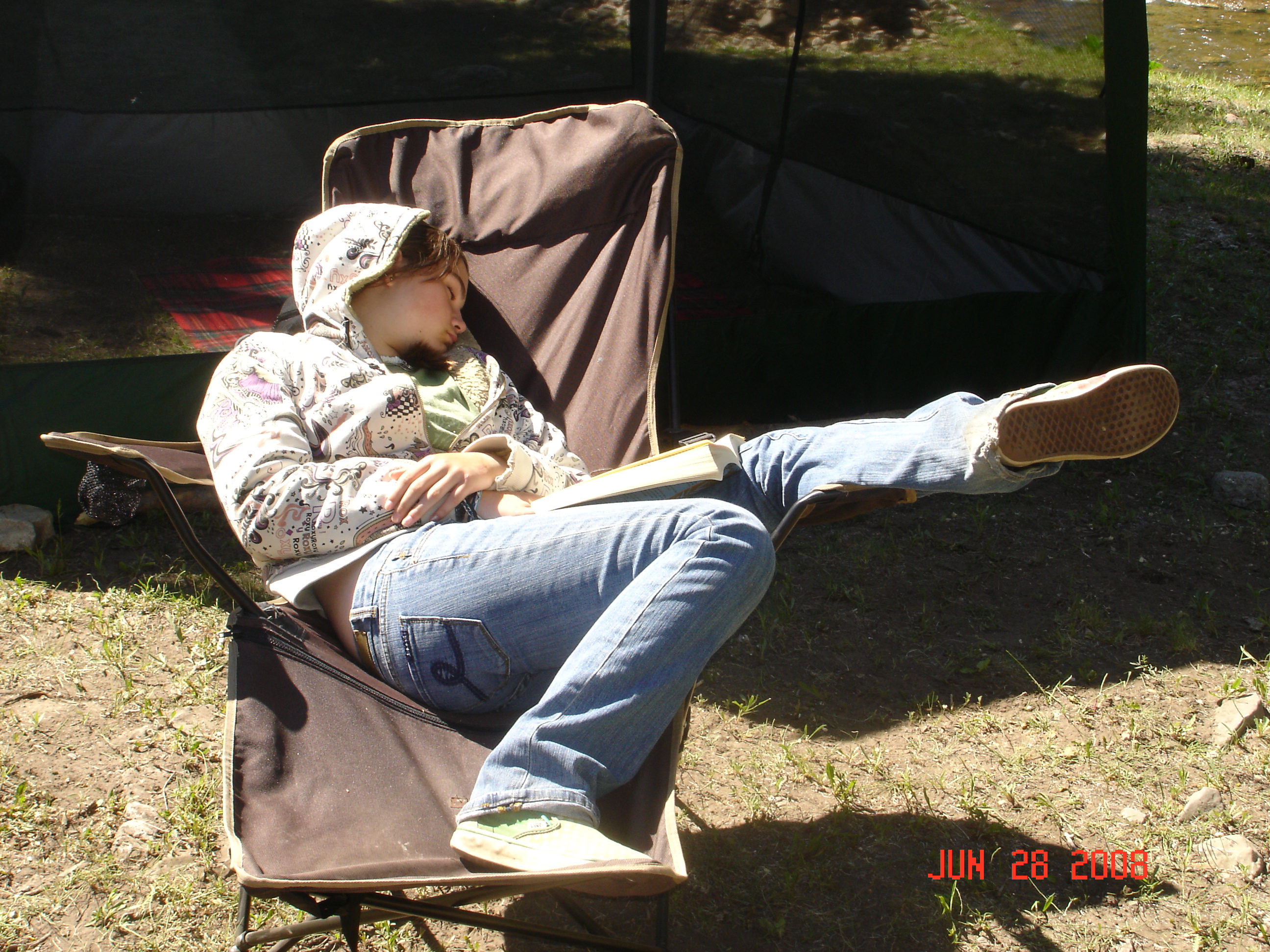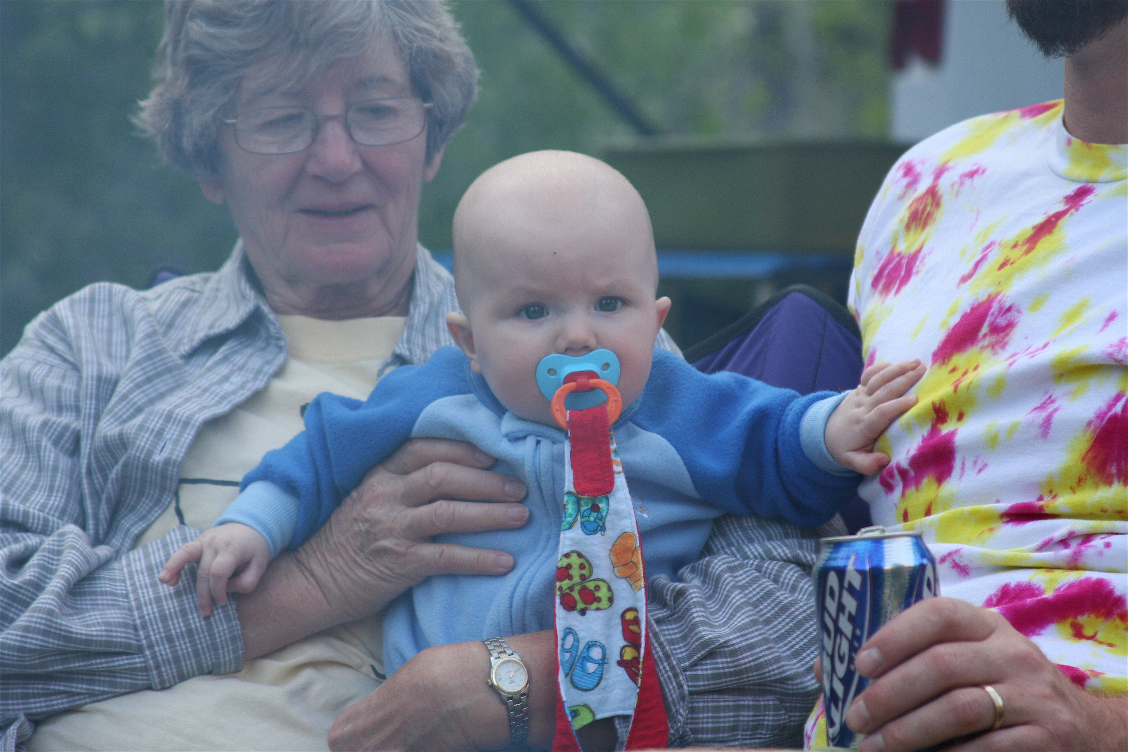 We had a 5 day campout on the North Fork of the Duchesne last week with Mike, D & D and girls, and J & A & SR. Cold at night (40 F) and hot in the day (90). We camped near the river and no one else was around, because Mom put up a big sign on the road that said "RCB Reunion". It was Steven's first camping trip, and he was well taken care of and (fairly) well behaved. He is about twenty pounds now, and a load for G & G. We have taught him to roll over, next is to teach him to crawl. Ann says to go slow! Here's the show: