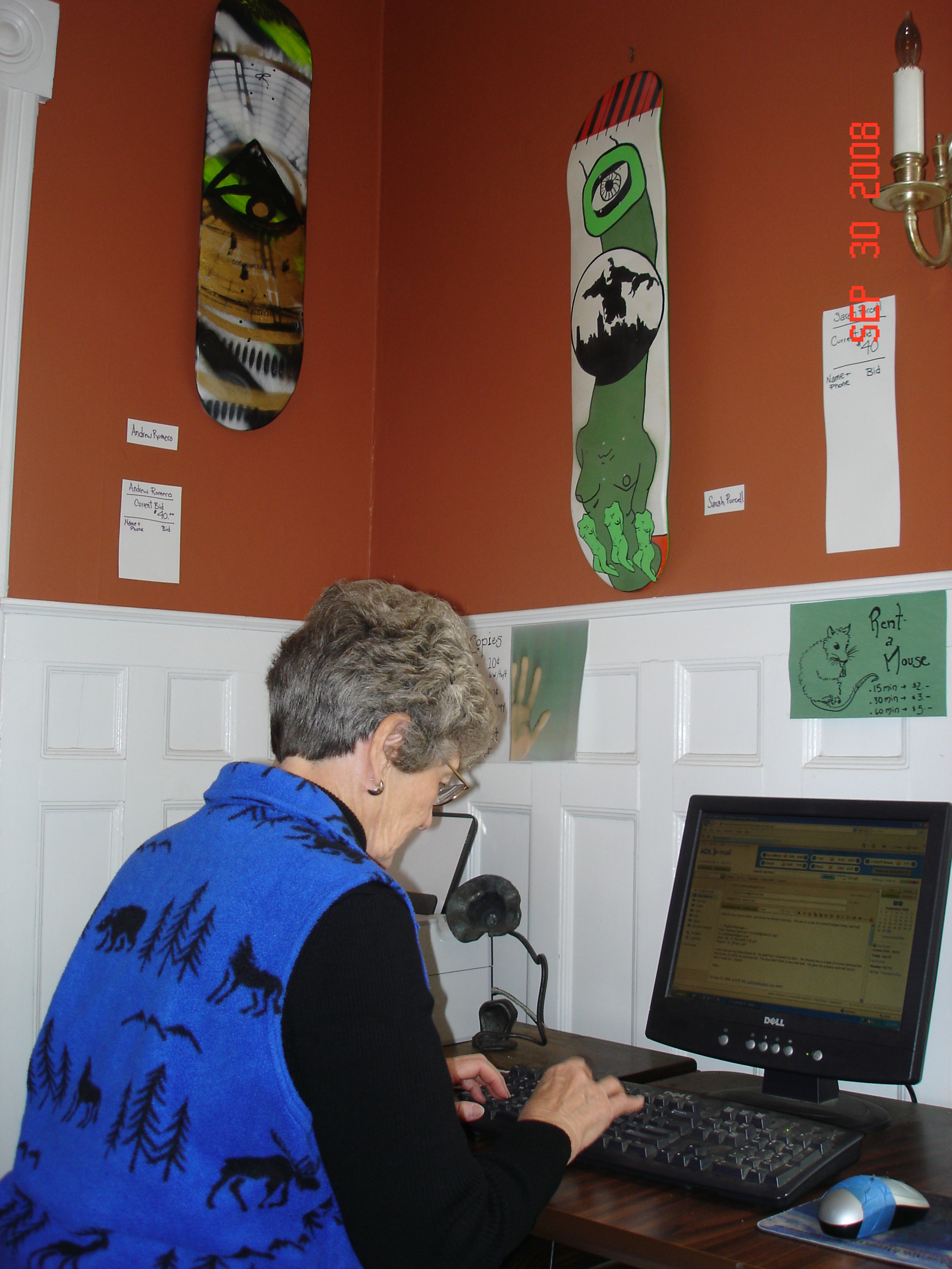 We went to Indy to watch Jordan and Andy while J & C went to Boise for a wedding, then on Sept. 27th left with Aunt Jean for Vermont. We flew to Indy and drove Jean's car on our trip. We stayed a week at Smugglers Notch ski resort in the mountains. From there we visited Alberg, on a penninsula at the north end of Lake Champlain, where the Babcocks lived before coming to Wisconsin. We found lots of Babcock info in Alberg. They were there 4 or 5 generations before James left for Wis. The Babcock house there was built by Job in 1827, and his son Ichabod was the father of James who moved to Wisconsin (about 1830's) with his wife Lovey (Reynolds), who was from nearby Faifax. James was the father of my great grandfather, Charles.