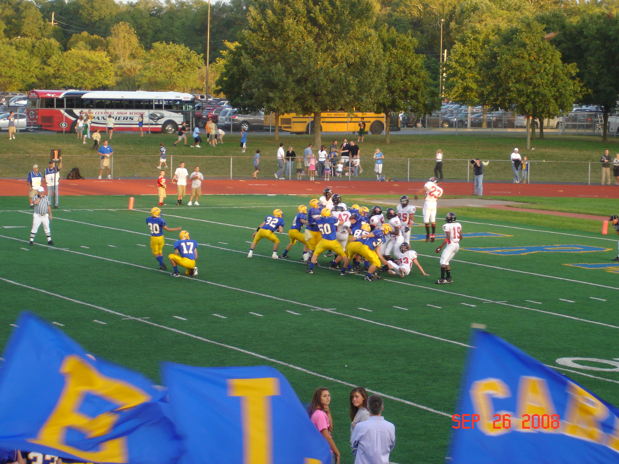 In Indy we were able to catch two of Jordan's football games. He is a sophmore and the point-after and field goal kicker.