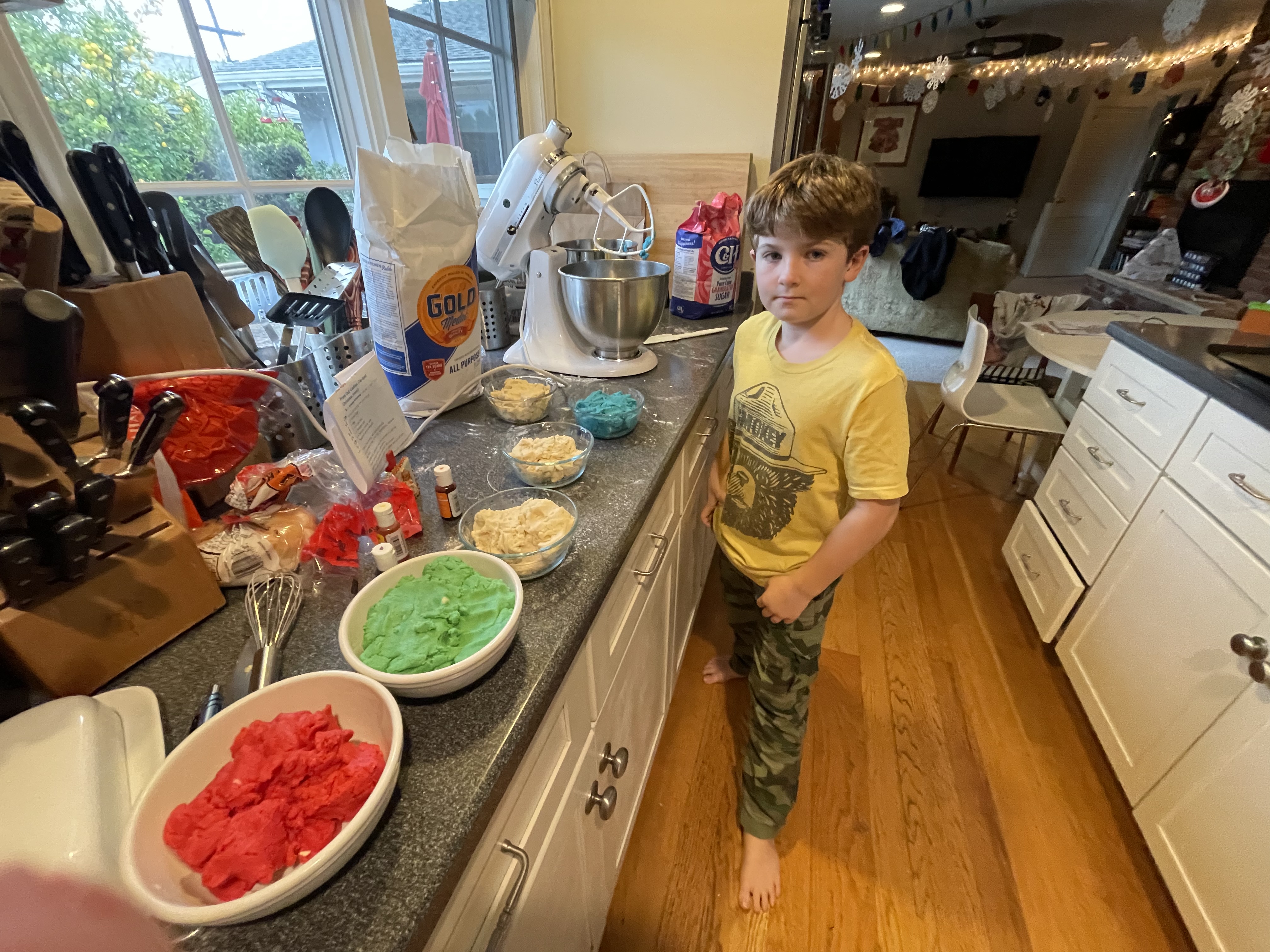 You cannot believe how hard these are to make with a bakery bag! Michaela tried and split the bag down the side. Afterward I showed her the press, i had gotten one from a neighborhood garage sale for $5. She tried again and had some great success.