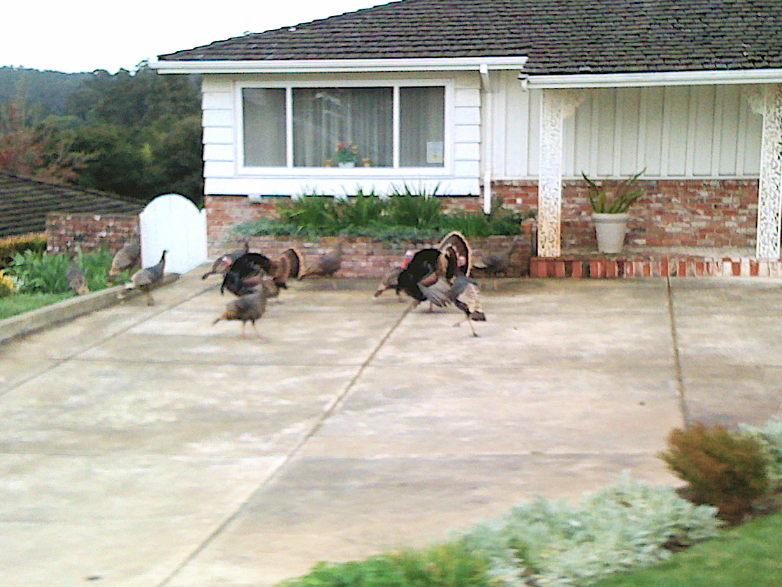 We get a lot of turkeys in our neighborhood. I think they pecked holes in our pumpkins. We'll have to catch one for next Thanksgiving. No morels though.