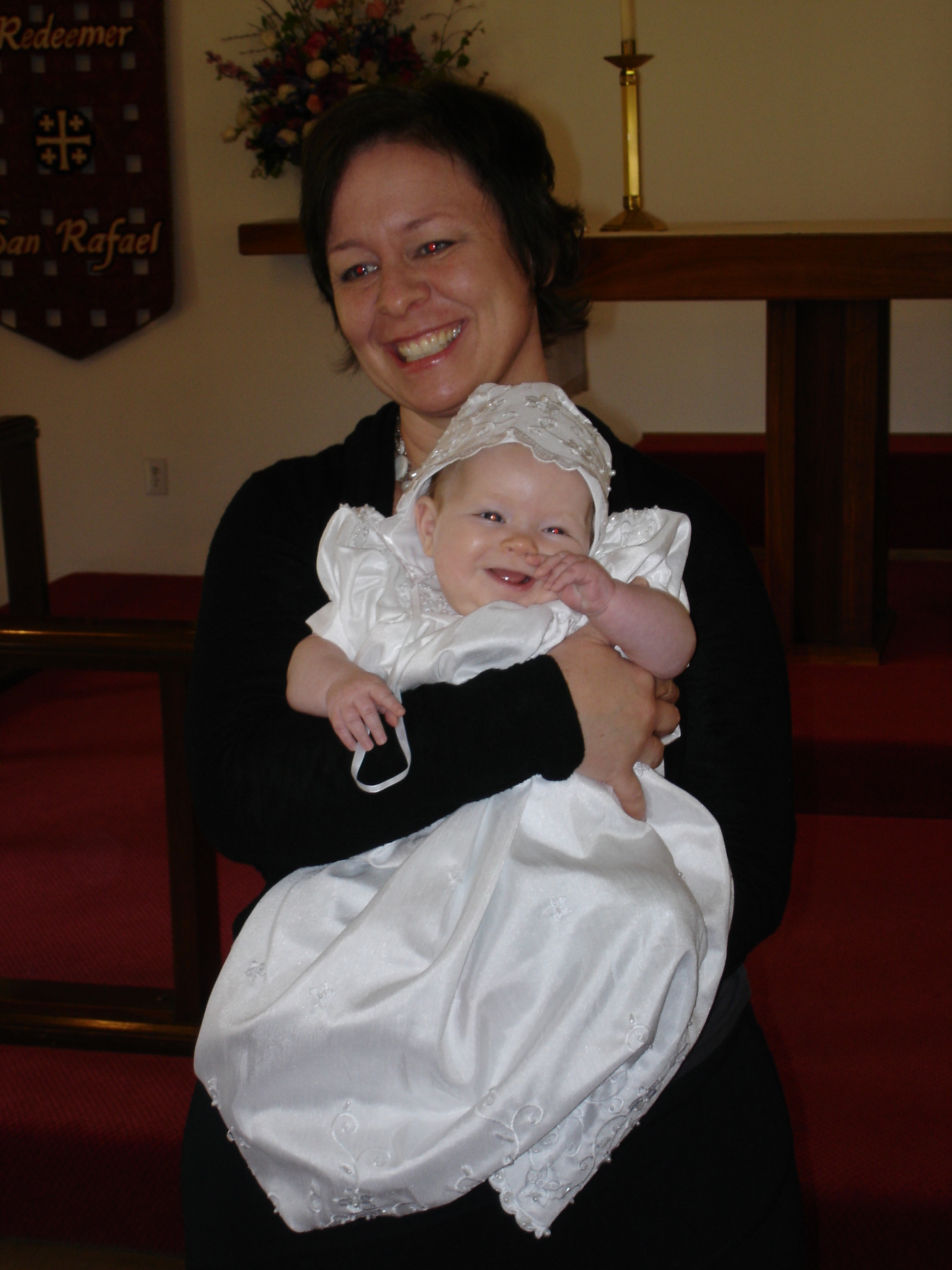 We attended the baptism of Mathilda at the Episcopal Church of the Redeemer in San Raphel, CA, on 2/12/12. It was a wonderful occasion for the Babcocks and the Westmorelands! Mathilda was on her best behavior, and only gave a little cry when she felt the water on her head. Mike and Hannah, and the grandparents, were very proud of her. She entered the church a little baby and went out a Princess!