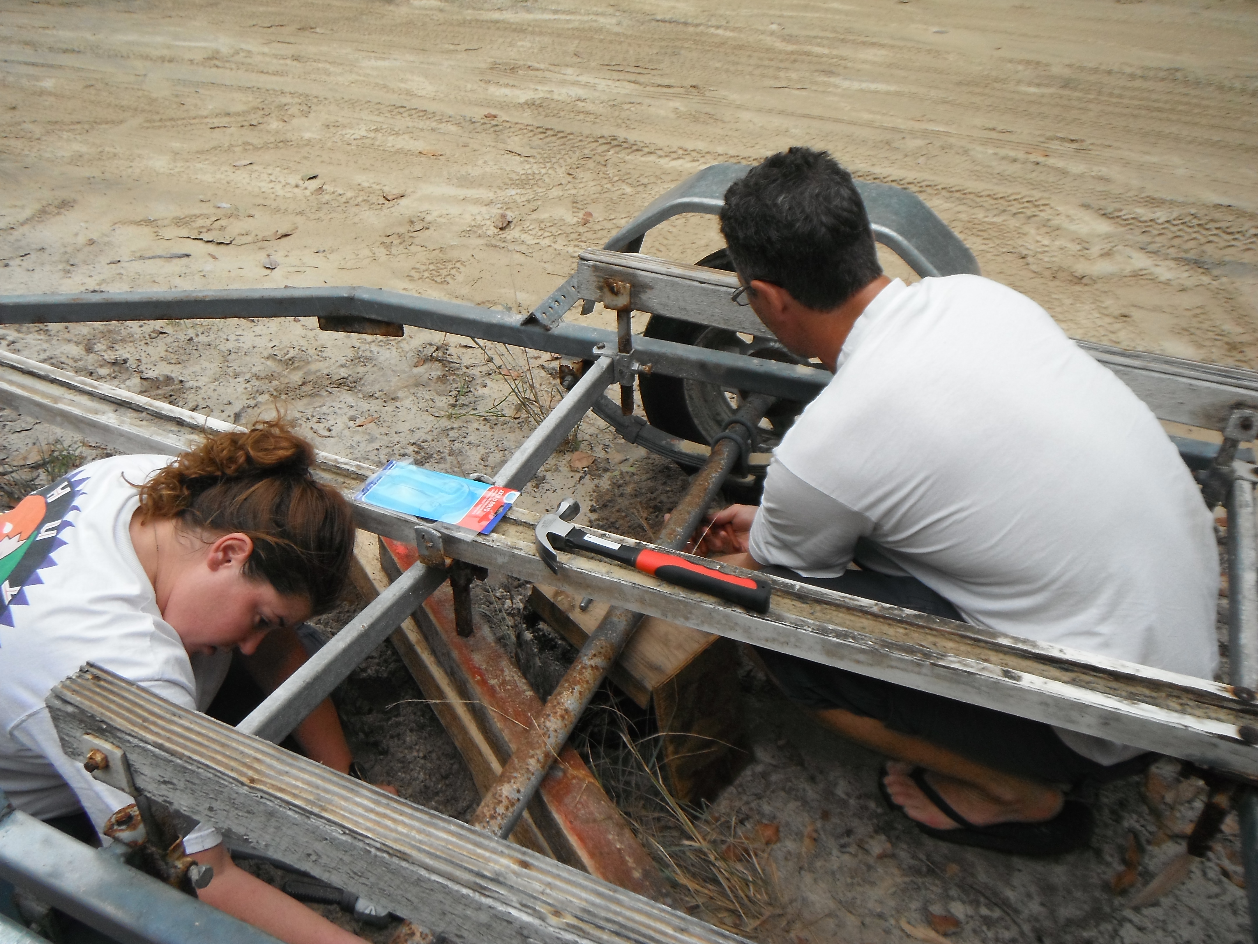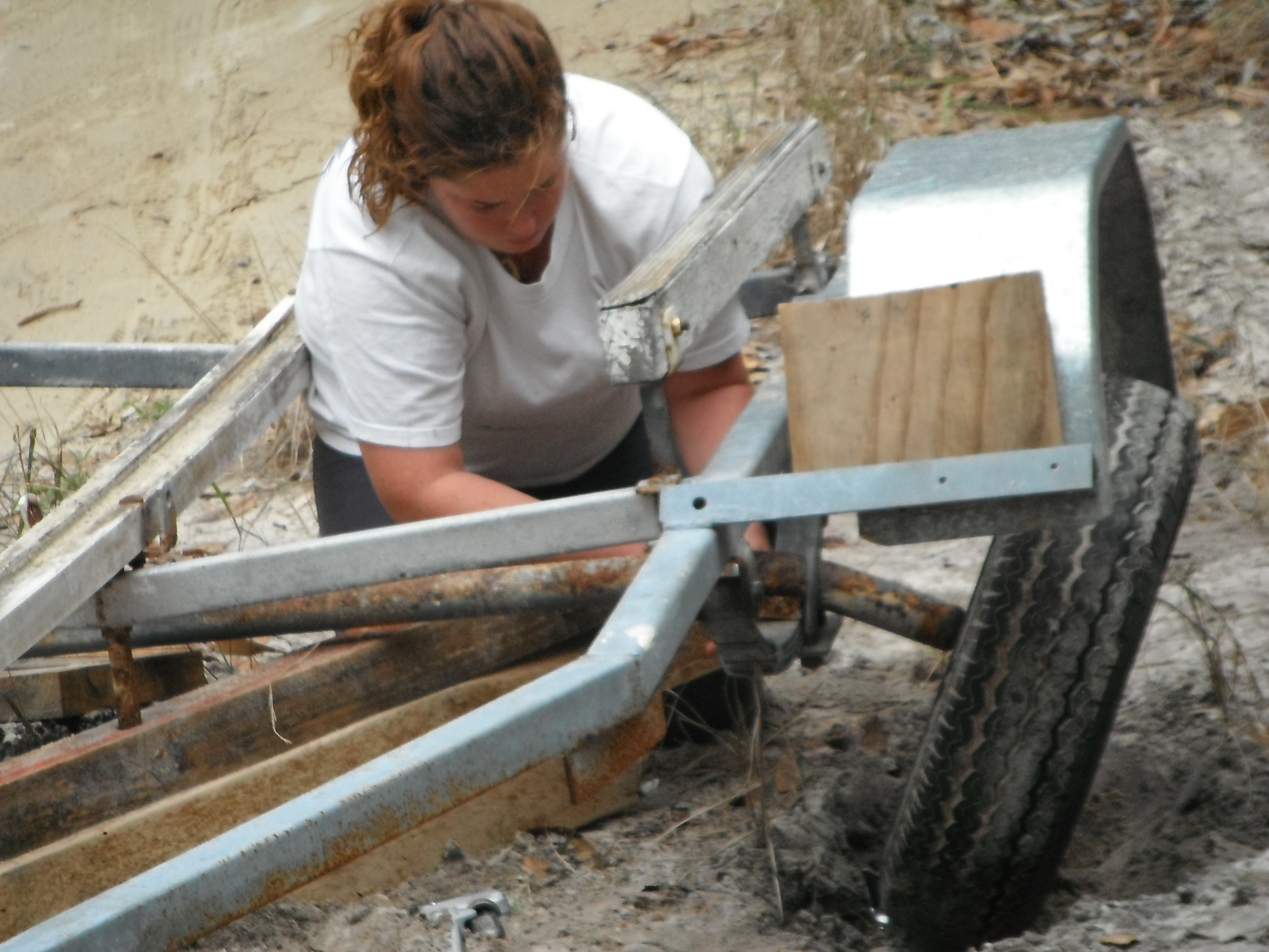 So, on the way out on sunday morning the trailer hit a stump and we bent the axle, the trailer was stuffed, have a look at the axle! after several trips up and down the beach we got it back to town where we could leave it to be fixed. It added about 8 hours onto our trip and we got back to Brisbane around 11! I need to learn to steer better.