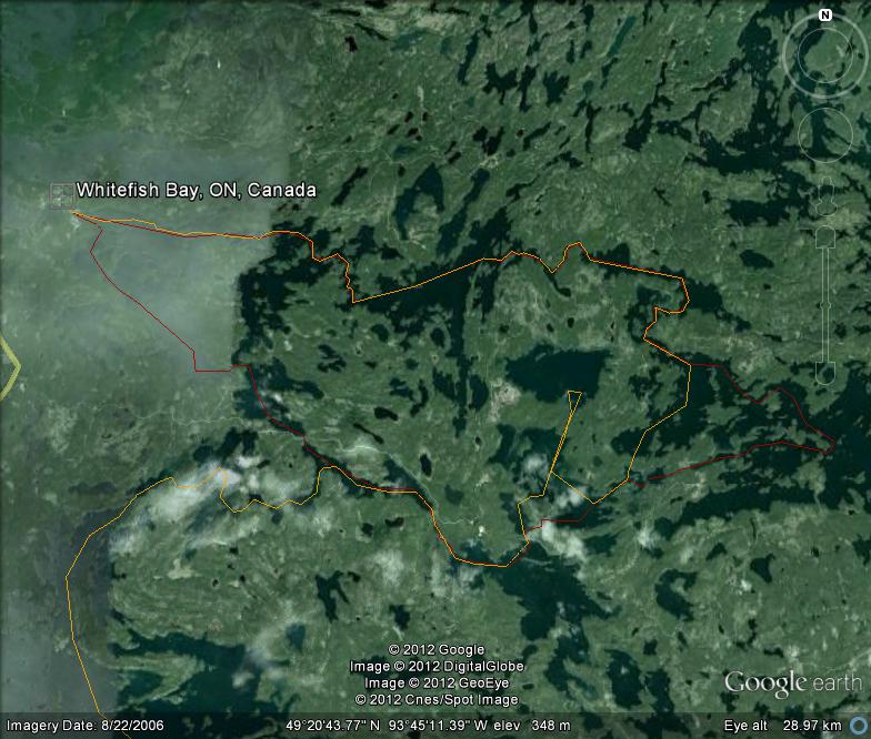 Time to plan the 2013 canoe journey! I have attached a map that pictures a couple routes through Caviar into Rowan and then either ending where we started at Whitefish Bay or at the Crow Lake put-in. There isn't a lot of detail but the yellow route is 55 miles and the red route appears to be a bit shorter. Both routes start in Dogpaw lake at Whitefish Bay, cross into Caviar via Dogpaw and Foam Rapids and then across the north side of Caviar into Denmark Lake. The first predicted portage is across a small isthmus into the northern reaches of Rowan Lake. The red route explores more of Rowan Lake and then crosses into Shingwak lake via a very small portage into Baby Shingwak. The yellow route spends less time in Rowan and cuts to Shingwak via a very short theoretical portage. The rationale for rapidly achieving Shingwak via the yellow route is that it provides time to Make Isinglass. This lake is reportedly supposed to have water so clear that you can see 100’ down. Based on the shore-line topography it appears to be a pretty flat area. The lake however is supposed to be deep. I am wondering if this lake is actually the result of a meteorite strike. From what I hear these lakes with exceptionally clear water may show this tendency as a result of phytotoxic metal accumulation. 25 feet of crystal water I can but as the result of a few veins of copper but to get 100 feet of vis there must be some form of extraterrestrial iron chromium copper nickel stuff wadded up in the bottom. Any might be cool to check out. The yellow route back-tracks out of Isinglass, across Shingwak and both head into Cameron (Go Mike!) via a couple of diminutive portages through Beggs Lake. Out of the NW corner of Cameron into Bog Lake (thing there’s leeches in it?) and via Cameron Creek into Stephen Lake. The Yellow Route courses into Stephen Lake and then via a couple of cool portages it makes Cedartree. Another option is to proceed up into Flint Lake and then into Cedartree via the Cedartree river. Might be a bit less carrying. The Yellow Route then makes Kakagi via the dam and the rest is history. The Red Route crosses into Flint and then after barely crossing into the very southern connecting arm of Caviar Lake we cross to Dogpaw via a small and innocuous appearing portage. From here there is a 5 mile paddle NW (can you say headwind?) back to Whitefish.