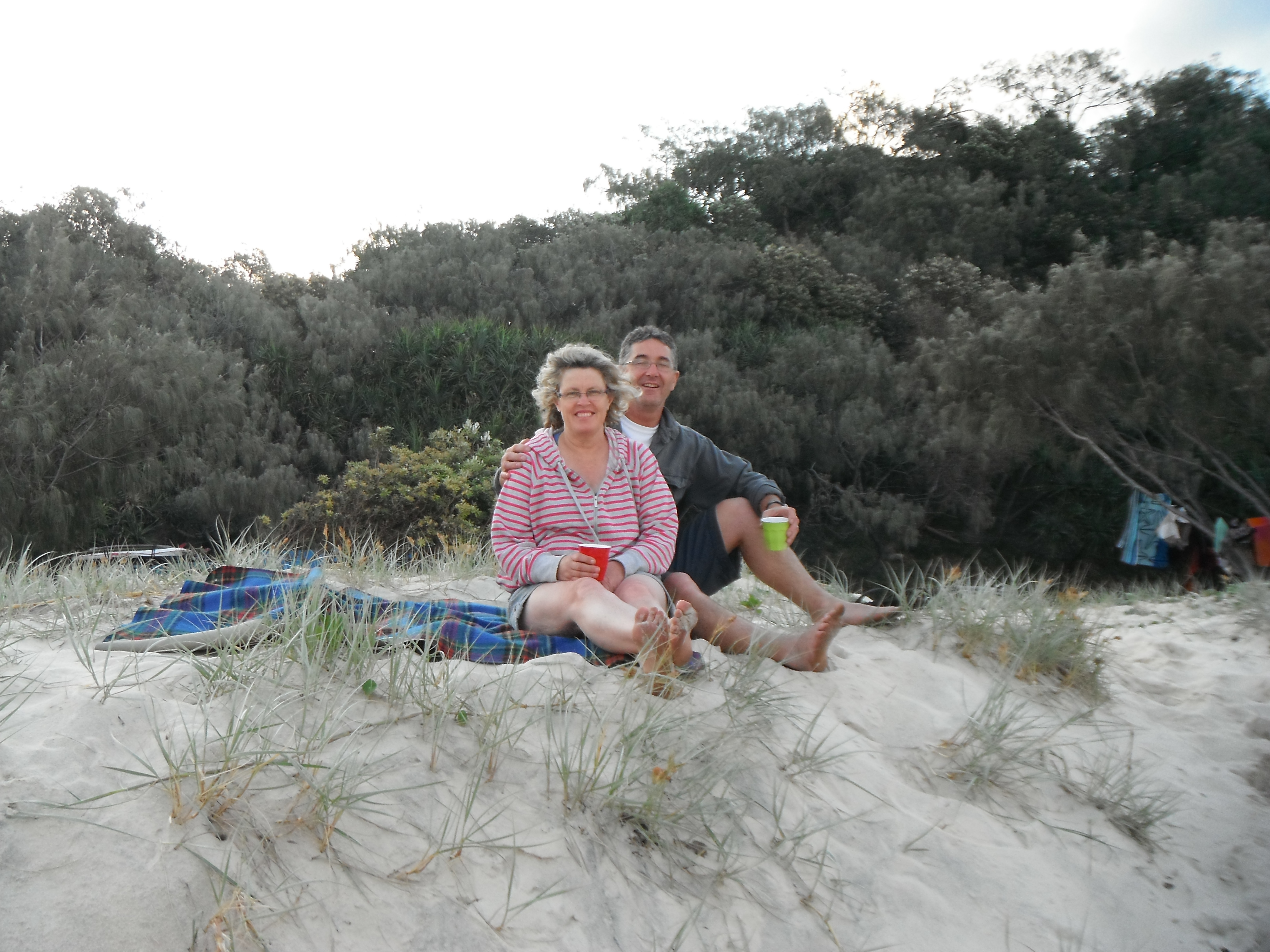 Right after Katie and Ben caome over we went for 5 days camping on the beach north of Noosa. The weather was pretty good, tho a little windy on some days. we packed plenty of food (too much) and discovered that we had to get a better tent as ours (margie and mine) blew over and the tarp also blew out. we had to go during the school holidays so it was kind of crowded, though people watching was fun at times. One night we saw a dingo outside camp, and a lot of whales migrating past on the way south to antarctica for the summer.