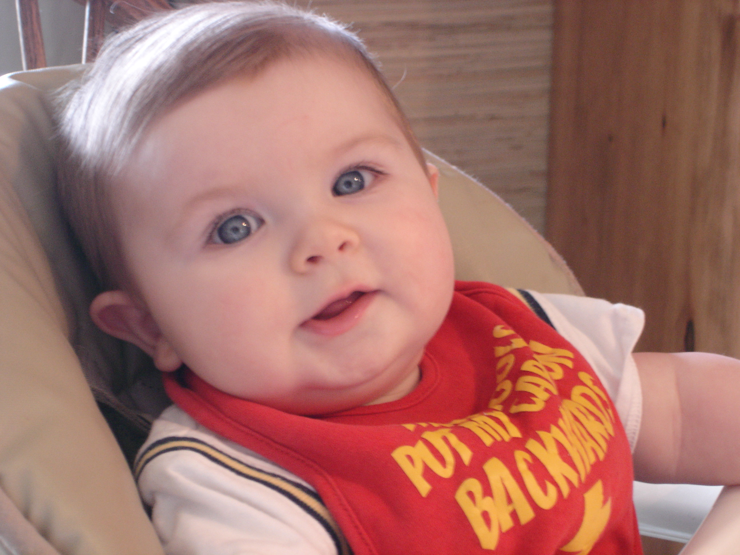 Winston was pretty relaxed about the whole thing. His bib read "Some fool put my cape on backwards!"