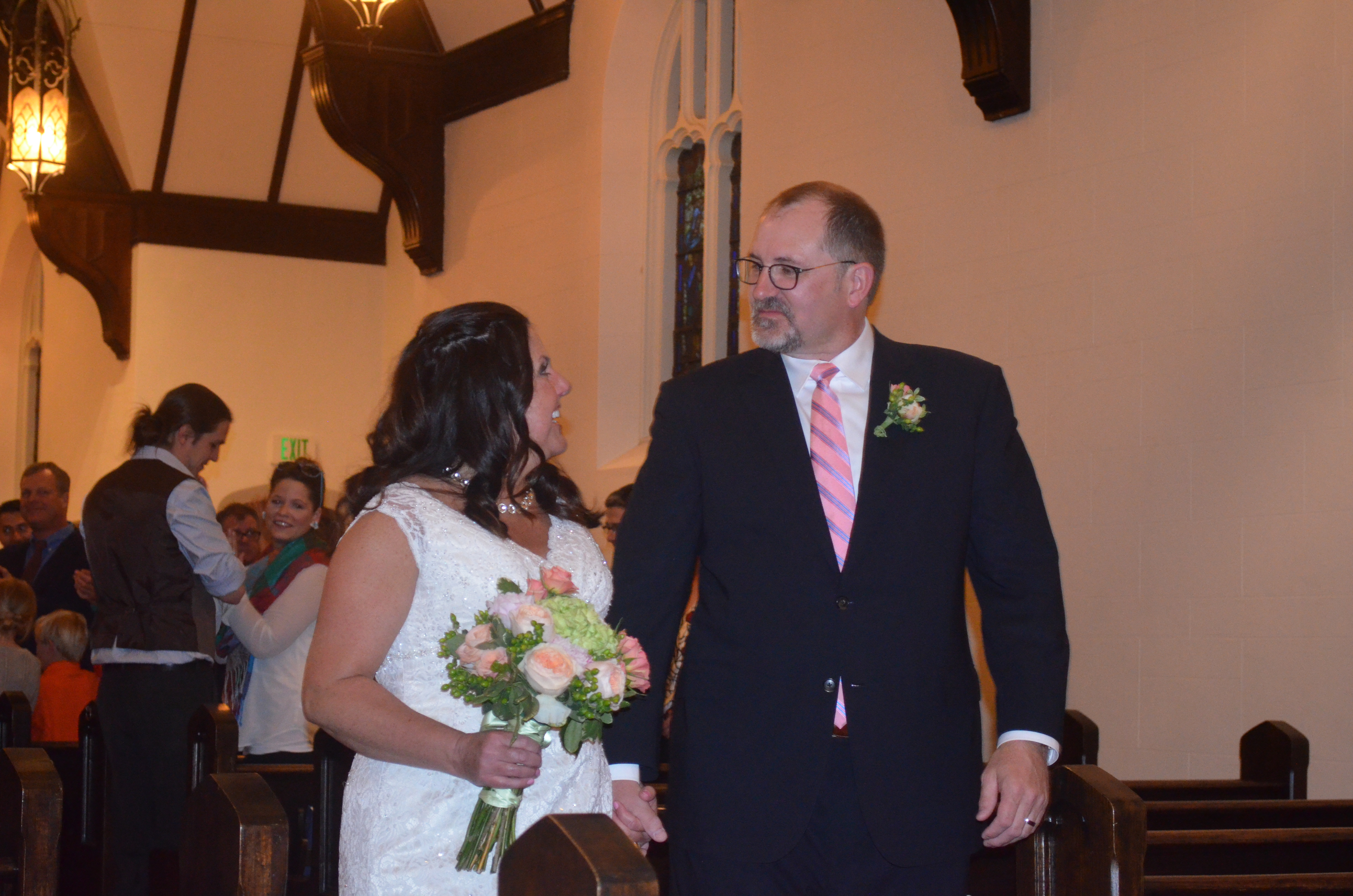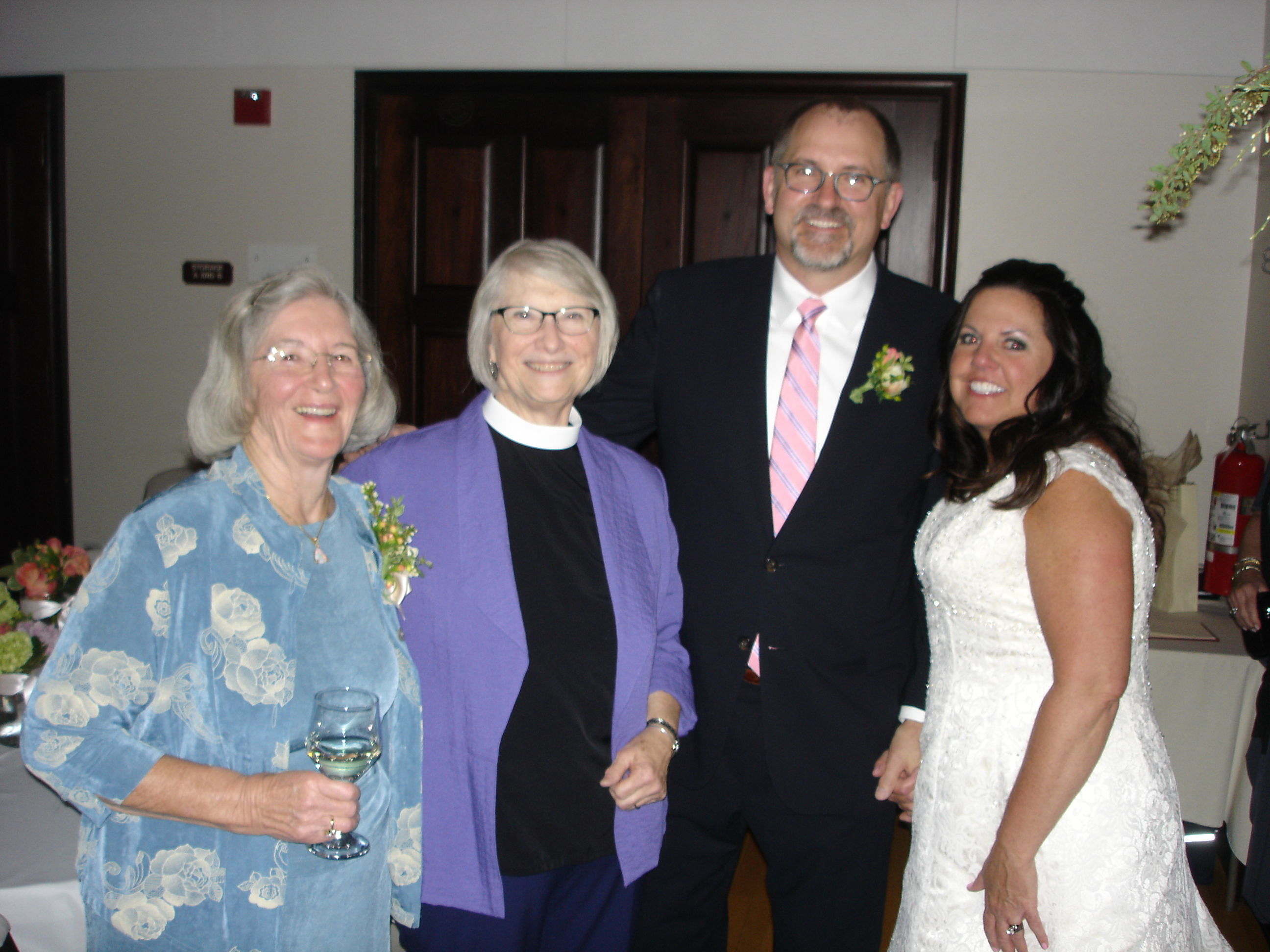 The wedded couple with Mom and our Rector Terri Heyduk at the reception.
