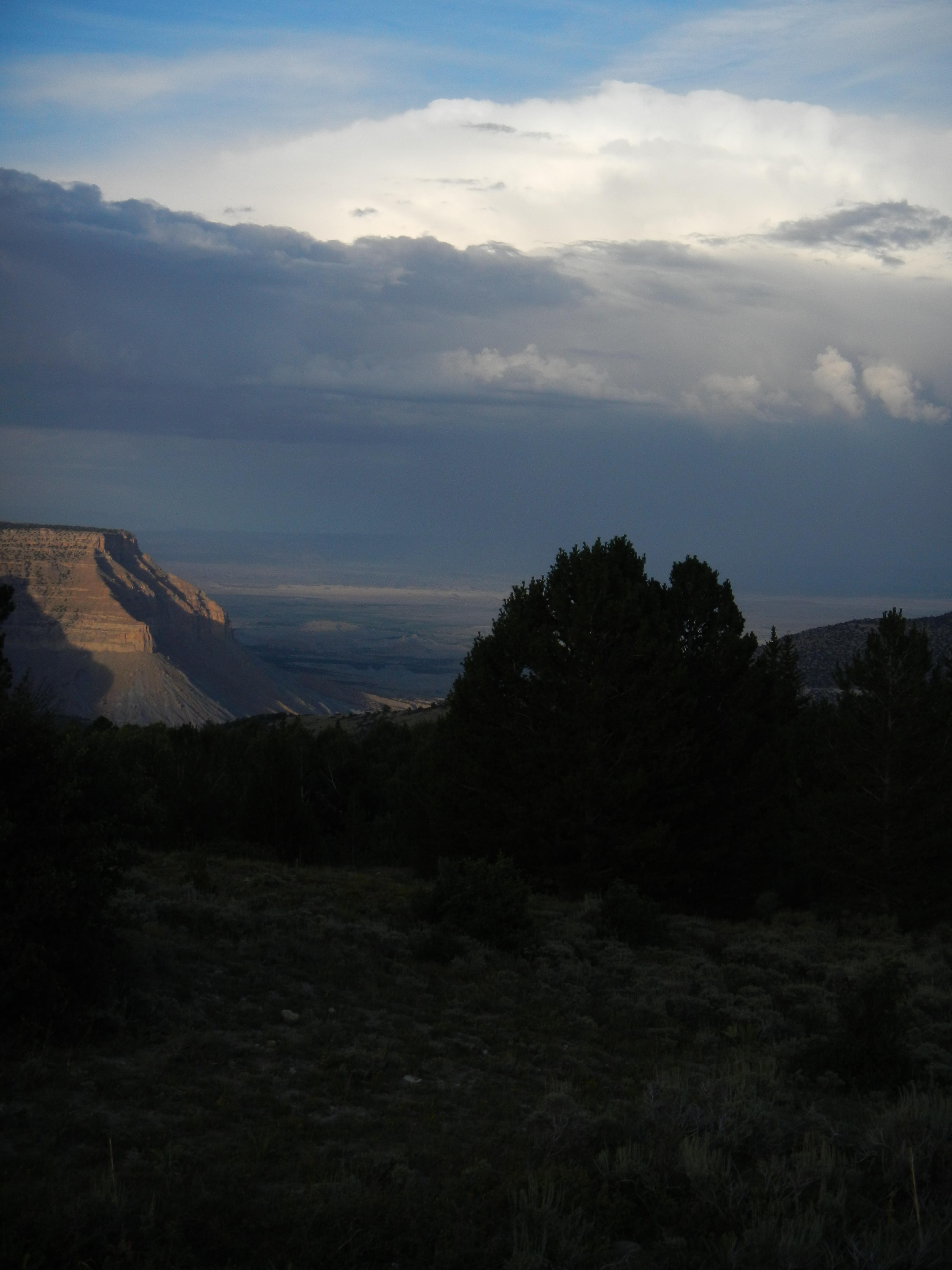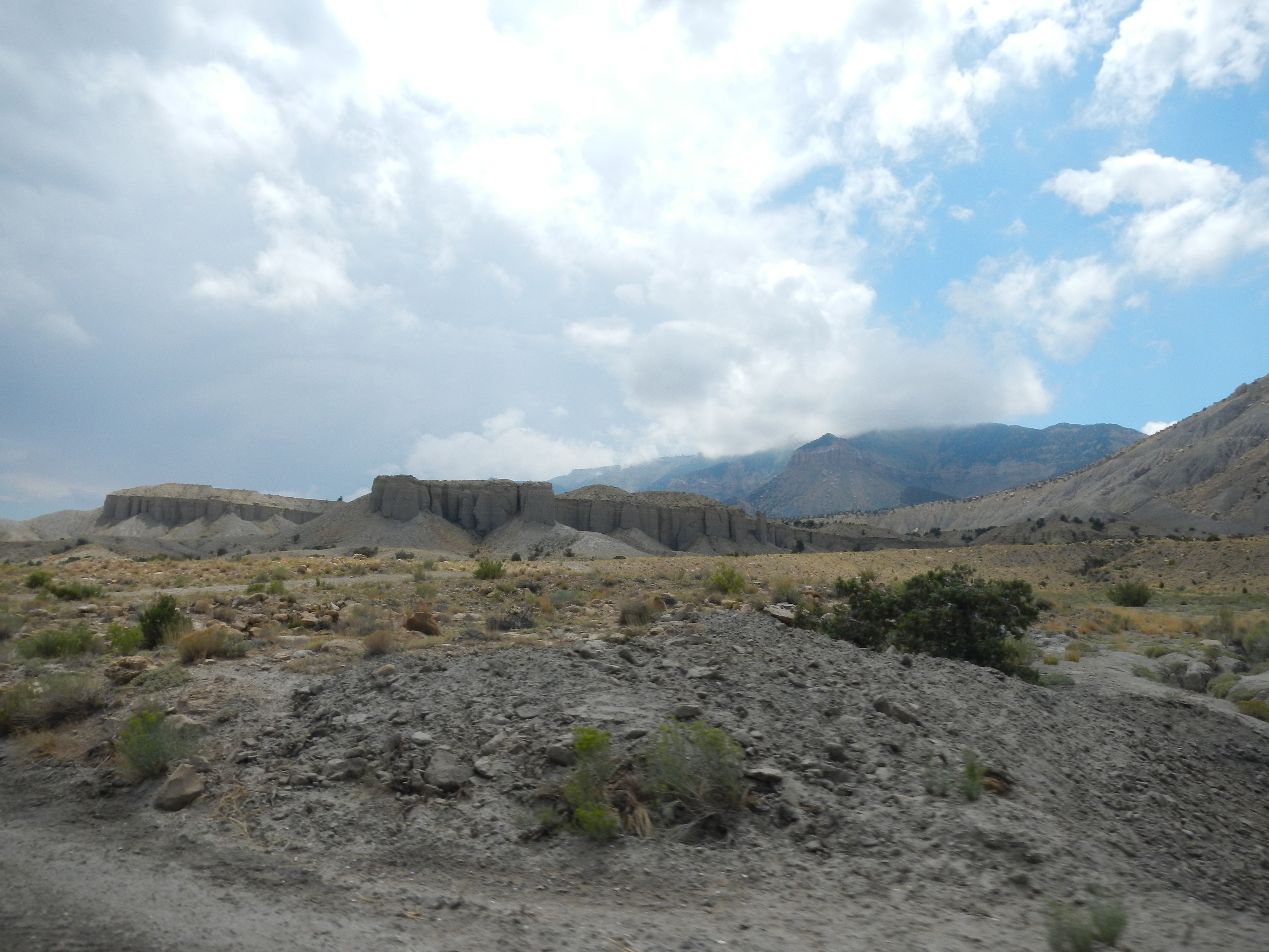 A view from the badlands at the mouth of Ferron Canyon, 4000 ft below where we were camped.