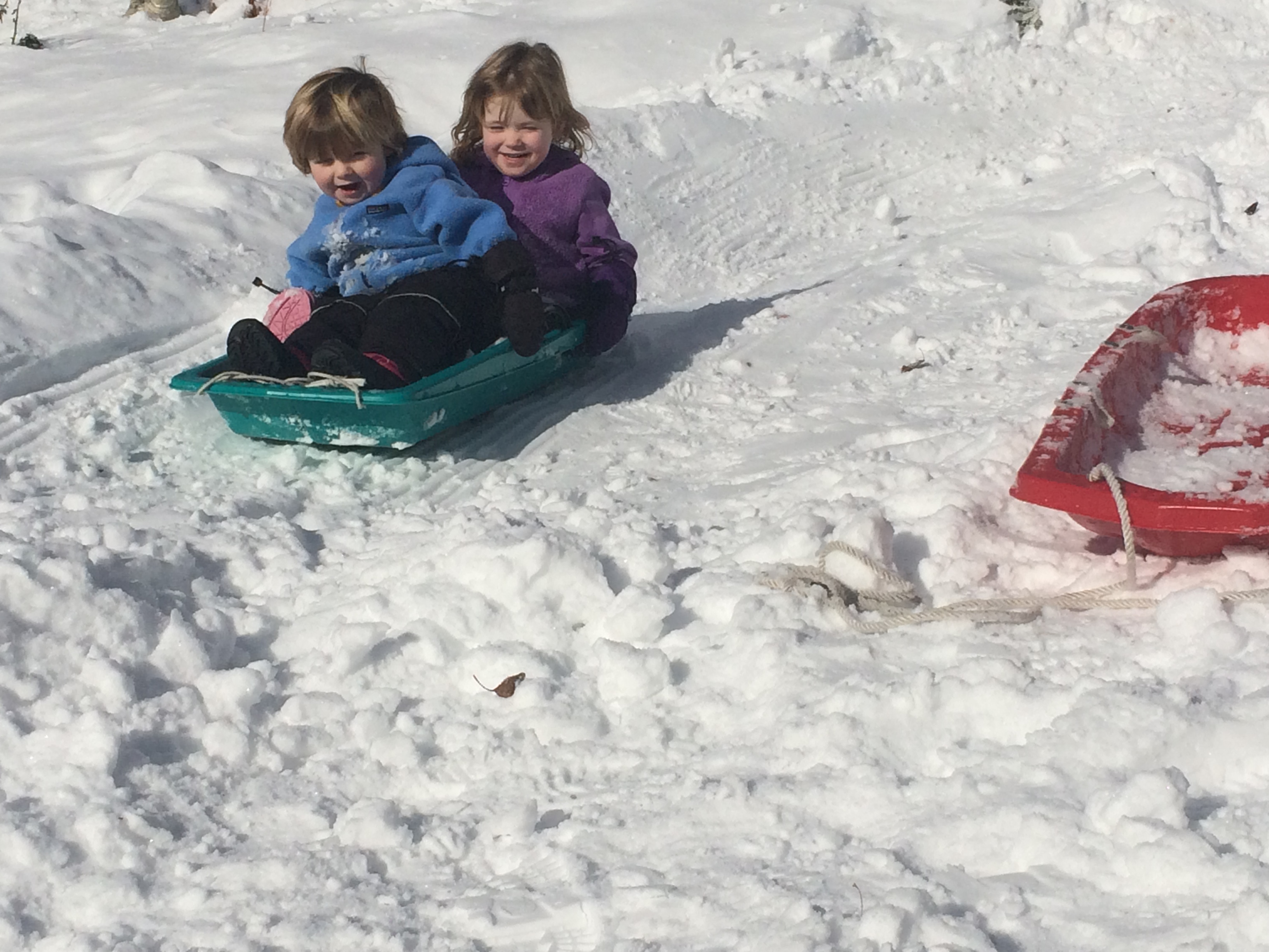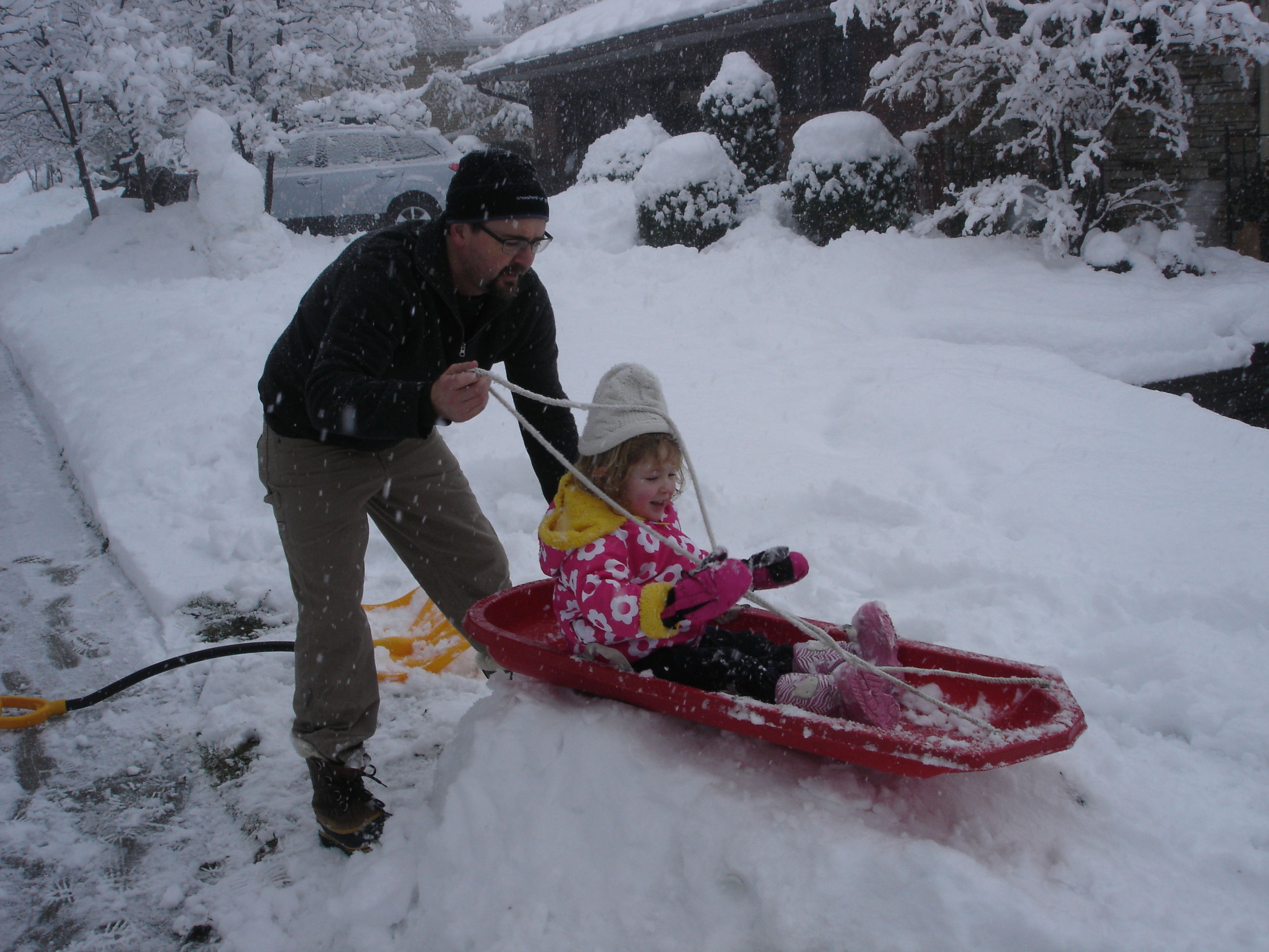 The snow continued off and on and the sledding was great, both down our yard, through the gate to the back fence, and later down the hill at the park all the way down to 11th. Ave.
