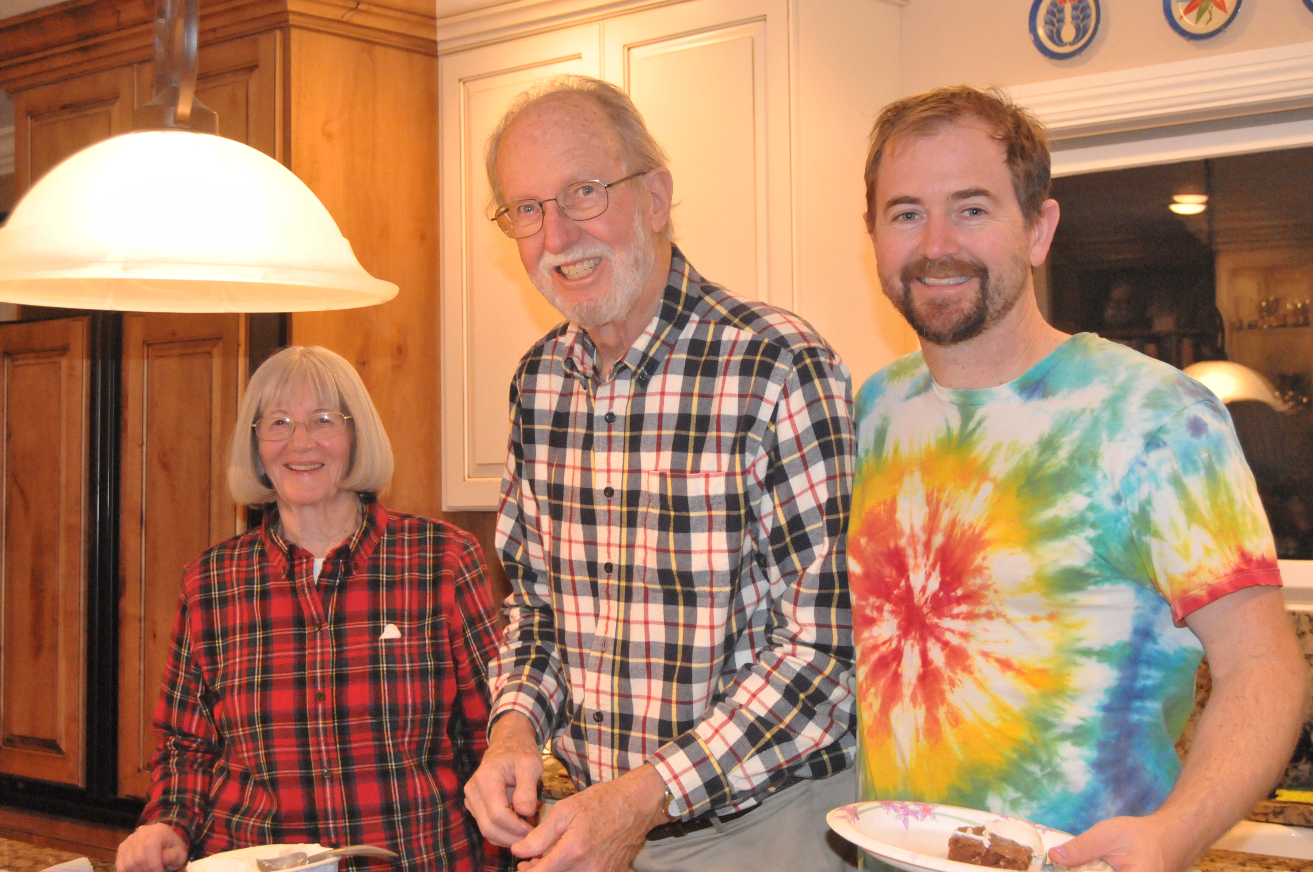 It was a wonderful Celebration. It started with about a foot of snow over the previous few days, Mike Hannah, Mathilda and Winston came early to help prepare and have fun in the snow, and Christmas Eve day Jon, Carrie, Jordan and Andy drove in! What an unexpected surprise. Of course, Mike and Hanna knew they were coming! Carrie (in typical Lee fashion) brought lots of extra food, having worked out with Hannah what the menu was for Christmas Eve. At one point we had planned on 11 for dinner - we ended up with 22 including Michaela with friends, Dee, Laura's parents, etc. Everyone was well fed and happy! Everyone pitched in with the fixings.